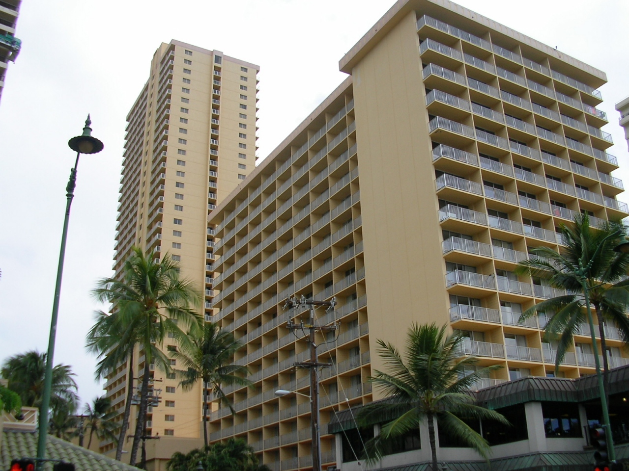 10月26日から11月1日まで会社の定年旅行、ハワイツアーで利用。第一印象は あまりぱっとしないホテルでした。部屋を見るとバスルームはトイレと一緒、洗浄便座無し。JTB 5泊 7日 2人で40万ちょっと格安ツアーではないのにガッカリでした。しかし滞在してみると部屋は古いけど綺麗な状態で、なにより使いやすかった。(室内のドレッサーの有無、テレビの位置、照明の明るさ、動線) トイレが詰まり、エアコンも故障、でもすぐ来てくれ直してくれた。タオルなど毎回たくさん置いていってくれ不自由は無かった。シャワーのお湯も止まることはなく安心。それとオーシャンタワー30階からの眺めもなかなかで、ワイキキではいい方かな・・・