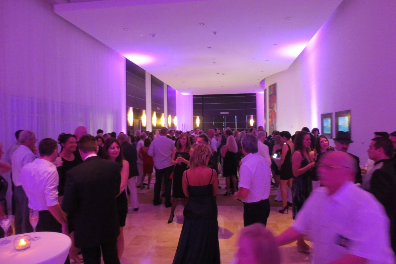 当日、パーティ開始前には1階のバーで思い思いにお酒を飲みながら、コミュニケーションを交わされています。皆さんドレスなどのフォーマルウェアで(カジュアルはNG)、まるでセレブの集まりって感じです。英語苦手な自分たちはポツーンと2人だけで飲んでました(笑)。とても場違いなところに居るとは思ったのですが、それでも楽しい体験です。