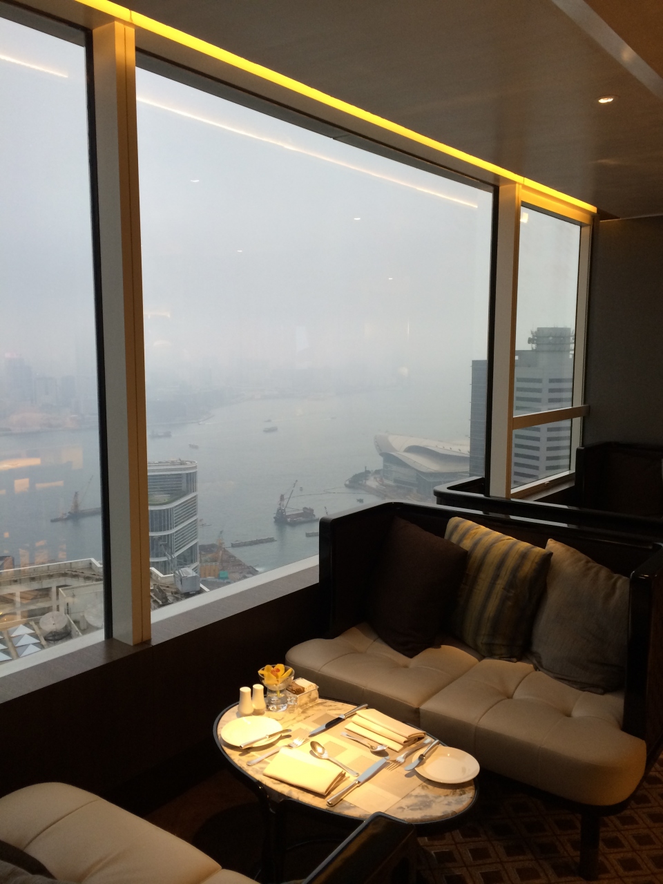 部屋はエグゼクティブフロアでしたので比較的高層階でしたが、前のホテル(シャングリラ?)が目の前に有って左半分はホテルビュー。右半分にチムサーチョイ方面の夜景が広がっていました。