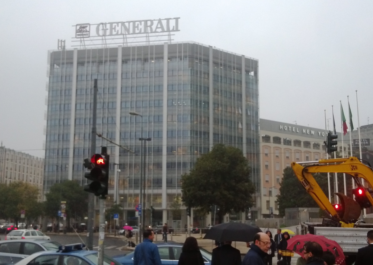 駅を出てピレリの本社ビル方向へ目をやると、ビルの屋上の看板が見えます。看板の割には入り口が小さく不釣り合いな感じですが、目印になります。航空機の遅れで到着が遅れましたので、乗り継ぎ地からメールで連絡を入れました。すると直ちに、到着を心からお待ちしますという内容の返事が届きました。安心してホテルに着くことができました。
