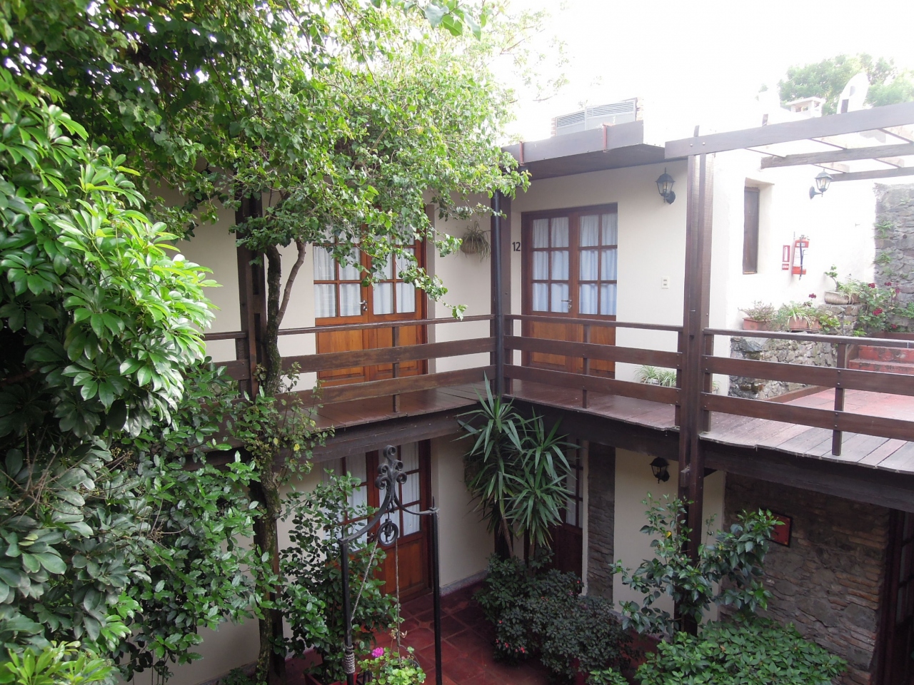 客室はフロントの奥の中庭を囲んで配置されていて、大きなお屋敷の一室に泊まっているようでした。客室のドアは全面ガラスの開き戸で、全面にカーテンがかかっていました。部屋はそれほど広くありませんが十分な大きさのワードローブがありました。客室の設備に関してはちょっとがっかり。特に浴室はお湯がほとんど出ず、水栓を水に回すとそれなりだったのですが、10月末のウルグアイは晩はまだ冷えるので水浴びをする気になれず1時間近くかけて身体を洗いました。エアコンはあるもののベッドの枕元に直接冷風が当たる位置で使ったら不快そう。冷蔵庫は騒音がうるさくて寝るときにはコンセントを抜いて寝ました。テレビは電源がつくもののチャンネルは映らず.. -_-