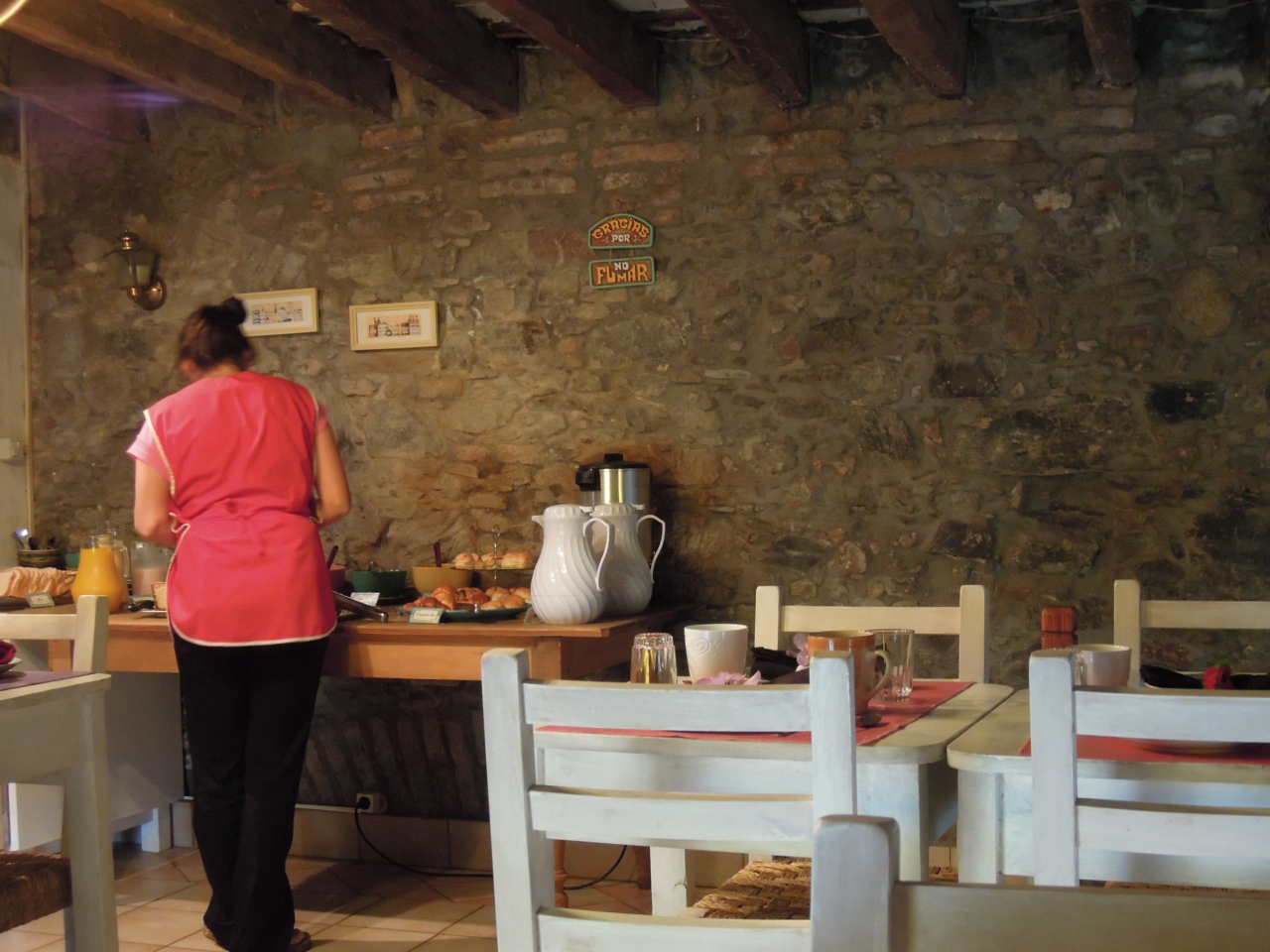 朝食はよかったです。フロントの上のロフトになった石造りの空間が朝食スペース。メニューはひととおりのバイキングで種類はそれほど多くありませんでしたが、パンやチーズ、特にコーヒーが美味しかったです。