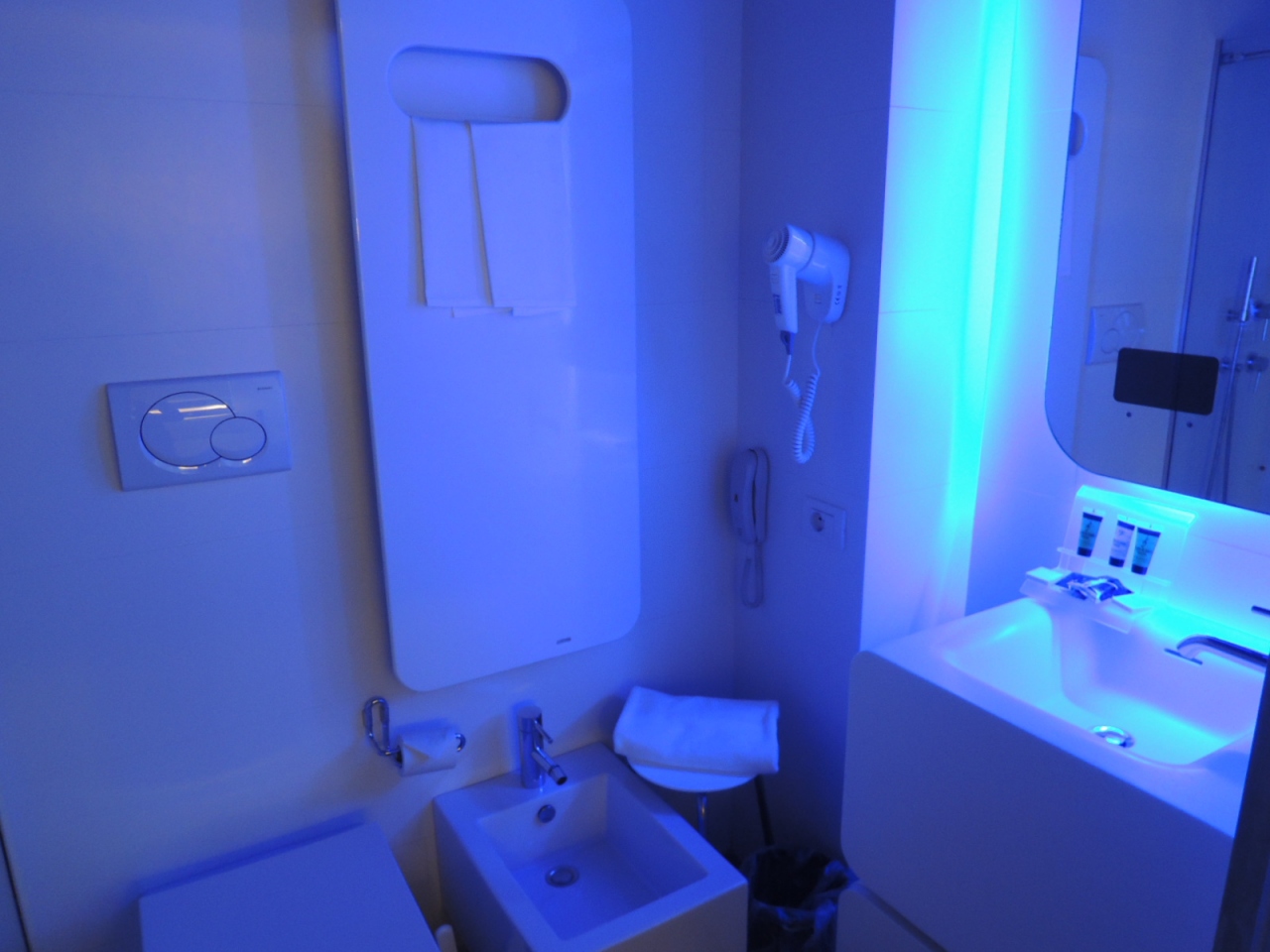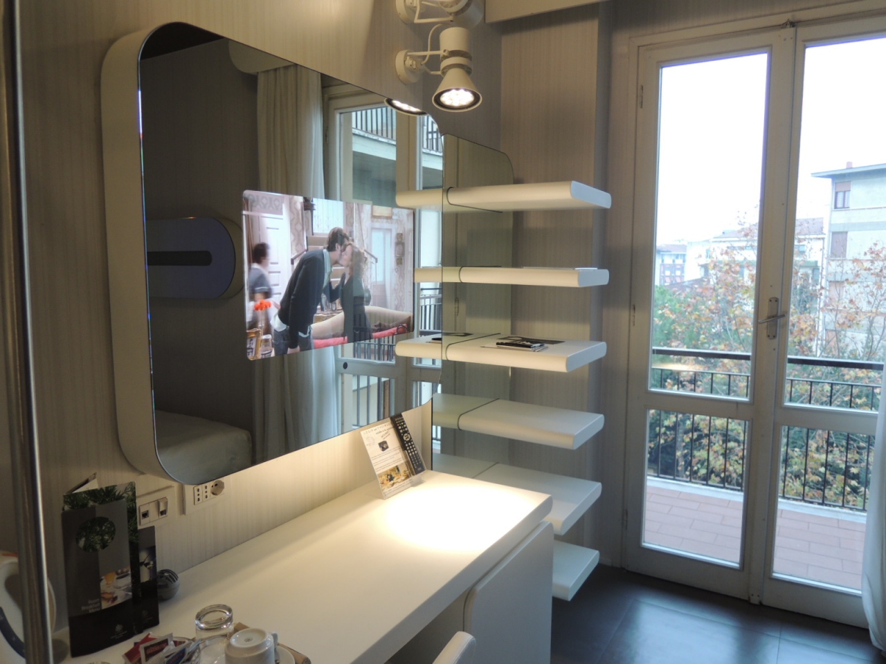 比較的大きなホテルです。場所は、SMN駅から近く、観光スポットのある中心部からやや離れています。ホテルの周りには飲食店等もほとんどなく、少し歩く必要があります。ホテルの前の道は、人通りは少ないですが、特に不安に感じる要素はありませんでした。駅方向から反対方向に歩いていくと、本当に地元の人しか使わないような英語表記もまったくないランチも取れるカフェ等もあります。部屋はデザインルームと名がついているだけあってとてもモダンな部屋でした。ただデザインを優先してか、鏡は多くあるのですが全身を映す鏡がなかったり、シャワーヘッドがカッコよいのですが水の出が少なかったり、ちょっと不便なところもあります。宿泊客は、団体客が多く、日によっては朝食がほぼ日本人という日もありました。朝食はサラダがないのが今一つでしたが、イタリアのホテルは、どこも似たような記憶があるのでそんなものかなと思いました。それ以外は品数も多く良かったです。ホテルの1階には会議室もあるので、昼間はビジネスの会合とかで使われていてそのような人の出入りが多数ありました。ホテルのフロントの人はイタリア的な愛想の良さがありませんでしたが普通だと思いました。少し歩きますが一応近くにコインランドリーもあります。可もなく不可もないといったホテルの印象でした。