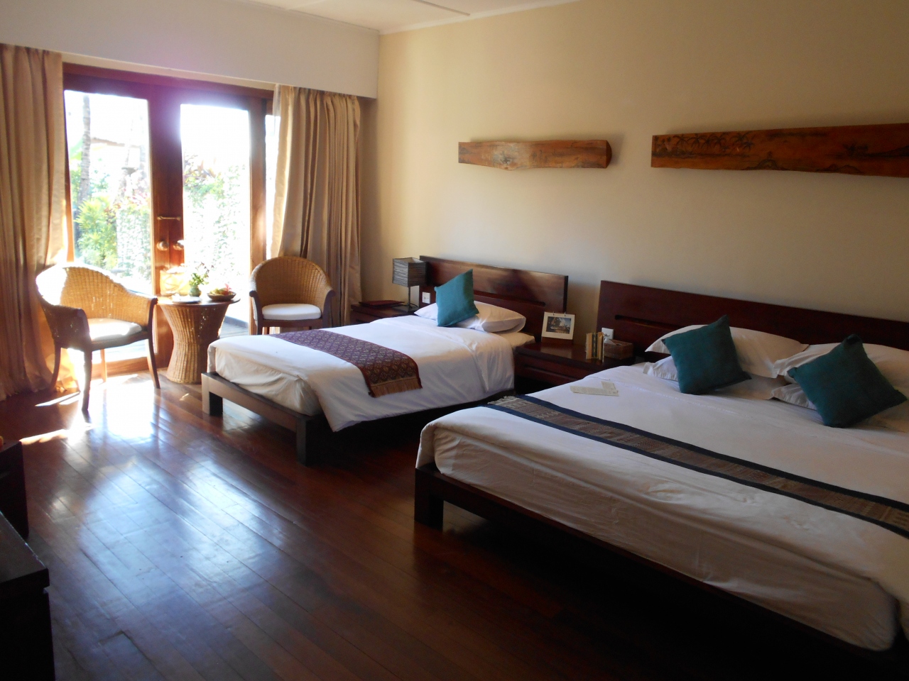 部屋は、綺麗ですし問題なしです。できればガーデンビューバンガローか、左右の端のビーチフロントが予約できれば快適に過ごせると思います。ビーチフロント中央は人通りが多いので落ち着かないと思います。