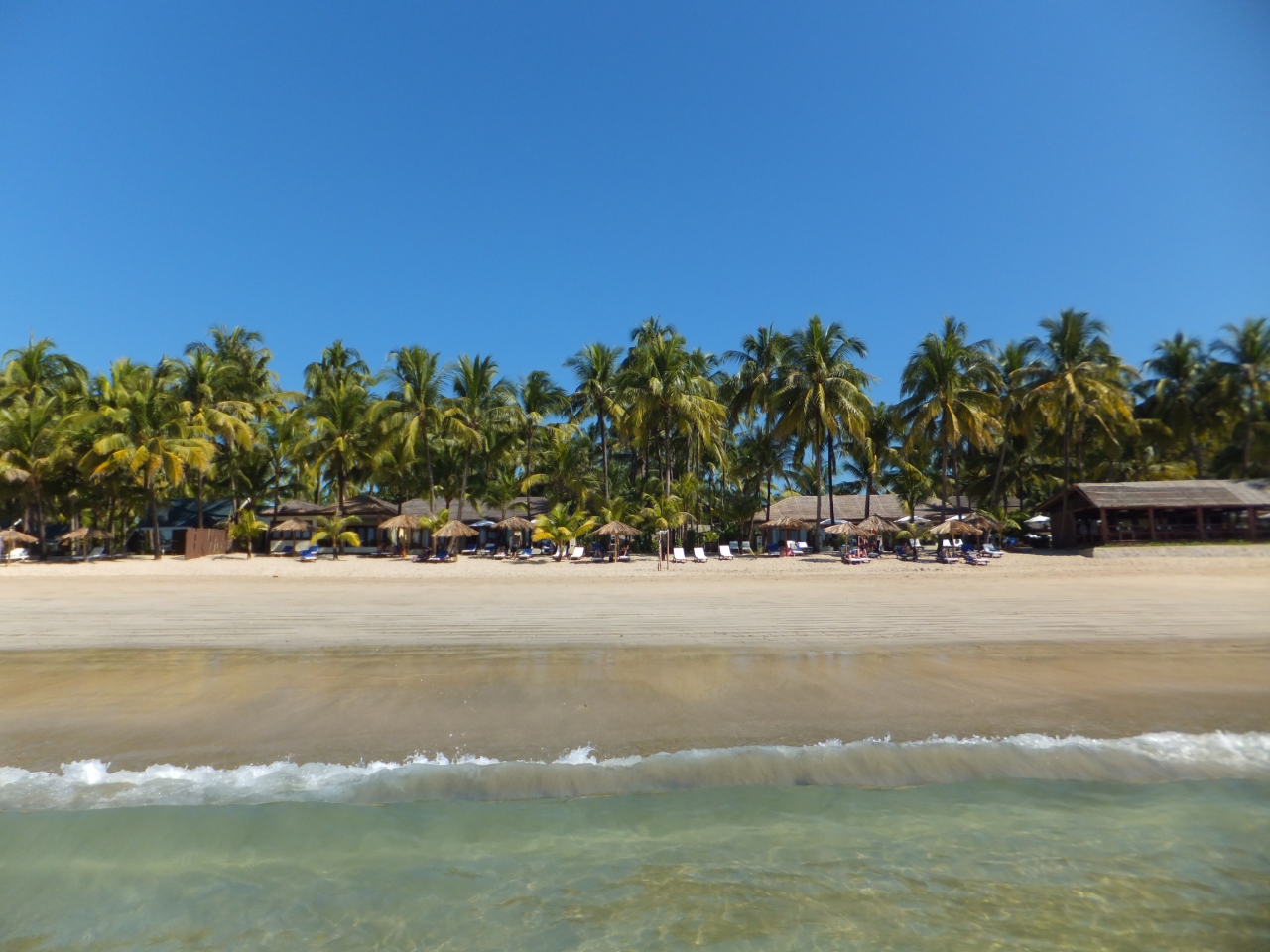 ロケーションは最高です。ビーチは岩場を避けるようにあり、パウダー状のホワイトブラウンの砂です。透明度は、肩まで浸かっても足元が見えます。となりの岩場には魚がたくさんいますので、シュノーケリングど素人の私には、ちょうどいい遊び場でした。そして、海に沈む夕日は感動です。