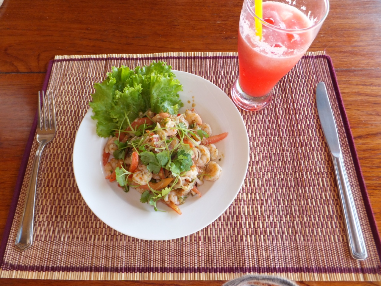 食事は、美味しいです。ただ日替わりディナーメニューのシェフのおすすめは、コースではなく単品なのは残念。ラカイン風のものを食べたいとお願いしたら、メニューにあるサラダをアレンジしてくれました。また、ホテルを出て左行くとすぐに、美味しいローカルレストランがあります。看板はないですが、ラカインモンティーを食べられるお店もあります。飲み物も購入できますよ。