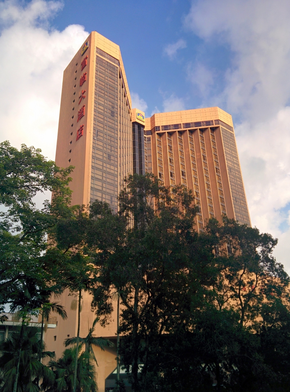 さて、ホテルの位置は羅湖駅を背にして左側にあるシンセン駅の丁度裏側にあります。シンセン駅手前の階段を上がって行き長い通路を渡りきると右前方に見えます。ホテル自体は少し年月がたっているようですが、客室や設備は金額からするとまぁまぁといったところでしょうか。部屋の広さとバスルームも結構ゆったりしているので一日中外出していた疲れも癒されました。スタッフの対応は中国のそれですので、期待はしないほうがましです。