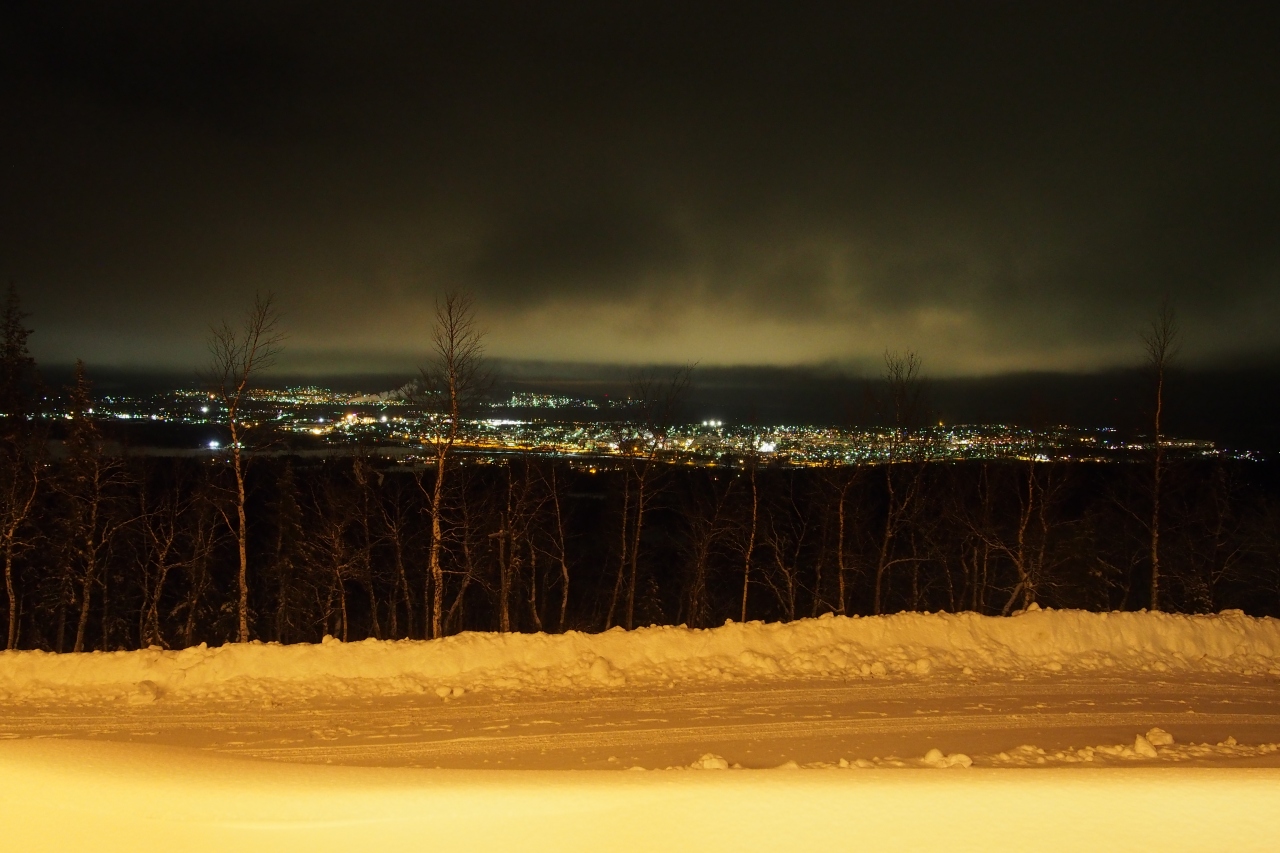 街の明かりが遠くに見えるくらいなので、オーロラが出れば見れる確率は高そうだなと