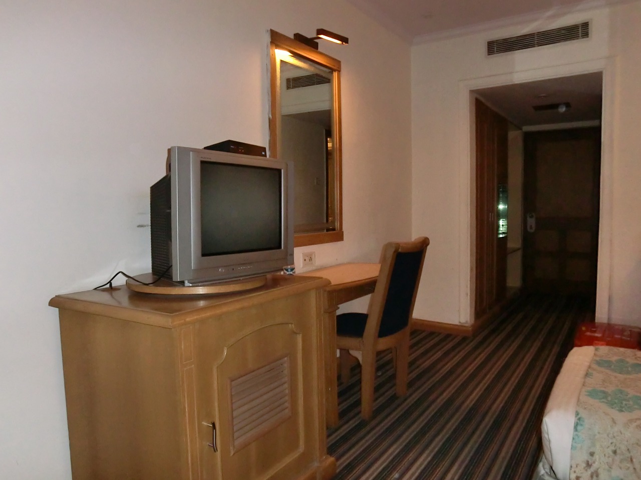 ツアーで組み込まれていました。全体的に薄暗い感じ。かなり古さもあり。エスカレーターは一機で、前向きに乗ってそのまま降りるタイプ。バスタブ付きでお湯もたっぷりでました。テレビはブラウン管でした。映るのか?つけなかったのでわからない。レストランの料理は普通。ウェイターは親切。美味しかったか?とか声をかけてくれます。ロビーは早朝、暗かったです。写真に撮ると明るく映るんですが。チョット不気味。フロントの人は精算時、料金をごまかしたり、お釣りがないからまけろ的なことを勝手にしていました。チェックが必要です。小銭は本当にないようですが、ちゃんとどこからか調達してきてたので、どうにかするはずです。って、当たり前なんですけど。
