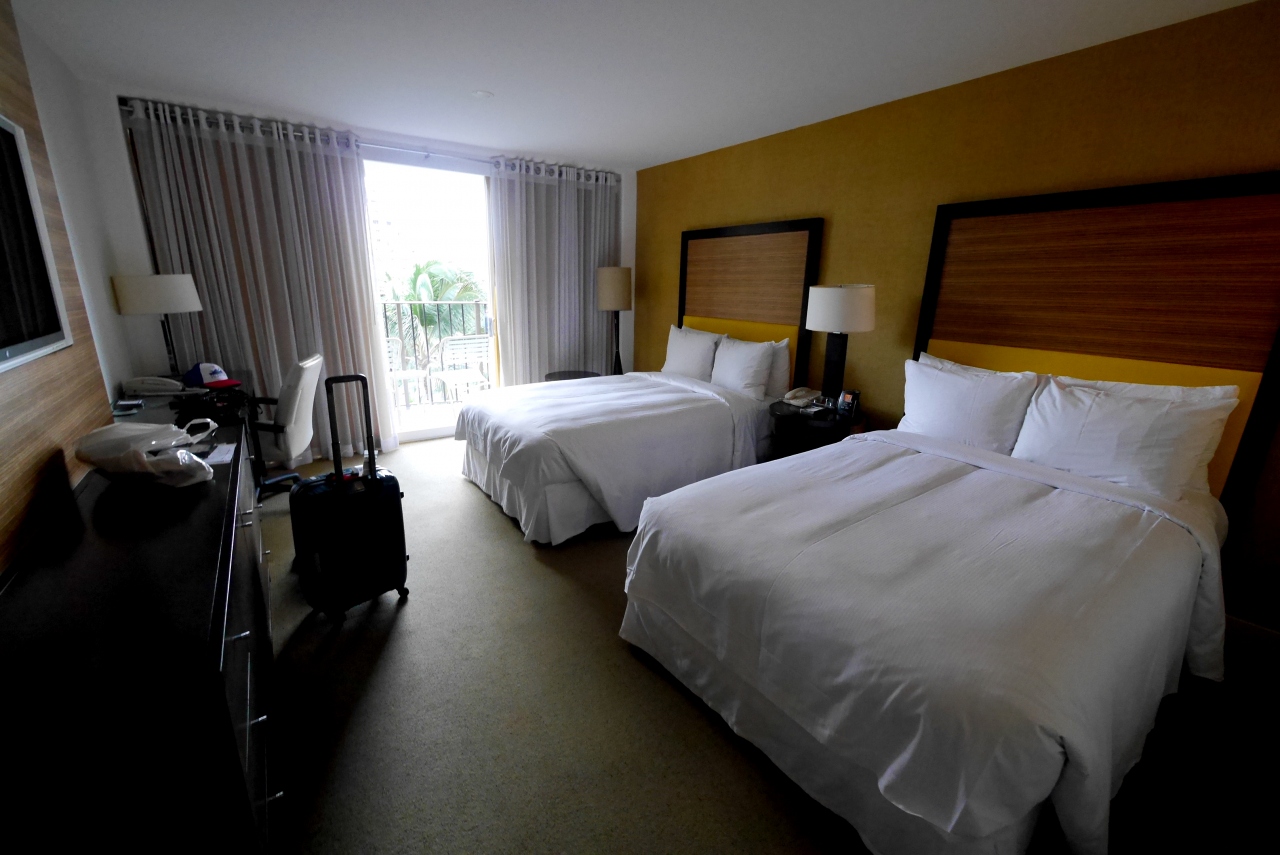 ワイキキビーチに近いのでここにした.同僚はヒルトンでもリゾート色が強いハワイアンビレッジにした.ツインのシングルユースだったが広くていい.アメニティも十分.風呂も広かった.しかし食べ物をそのままにしたら17階にもかかわらず蟻が群がってきた.