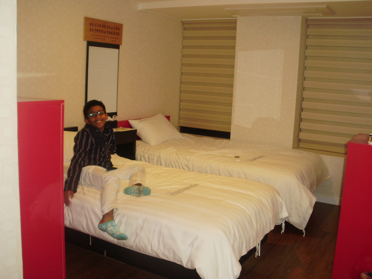 SuperJuniorに由の旅をしたくてキョヒョンのゲストハウスがOPENしたばかりであったので、中年女二人、小学生男子1人の3人で宿泊しました。