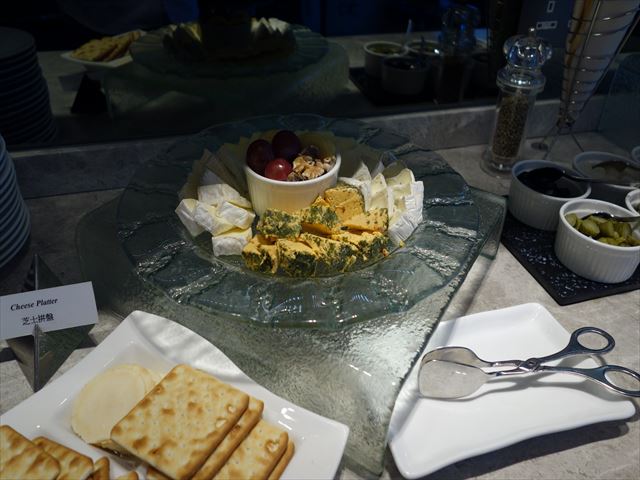14階のハーバー側にクラブラウンジがあります。あまり広くはありませんが、開放感がありくつろげると思います。カクテルタイムには、オードブル、サンドイッチ、チーズなど10種類くらいの料理が提供されます。アルコール類は、シャンパン、赤・白のワイン、ビール等があります。シャンパンとワインはディスプレイされているだけで、スタッフに注文すると持ってきてもらえます。ビールはソフトドリンクと共に冷蔵庫に入っていて、その気なら昼間でも自由に飲めると思います。