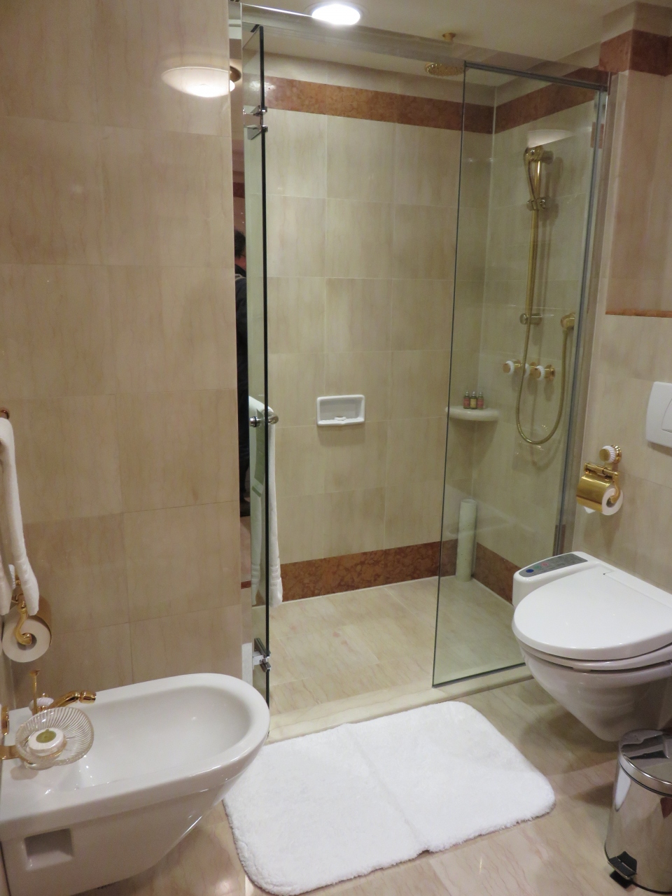 浴室は、ジャグジー付きバスとシャワーブースが独立しており、髪を洗う場合は、浴槽とシャワーブースの移動が若干面倒です(バススペースが広いため)。トイレはウォシュレット付き。別にビデも付いています。