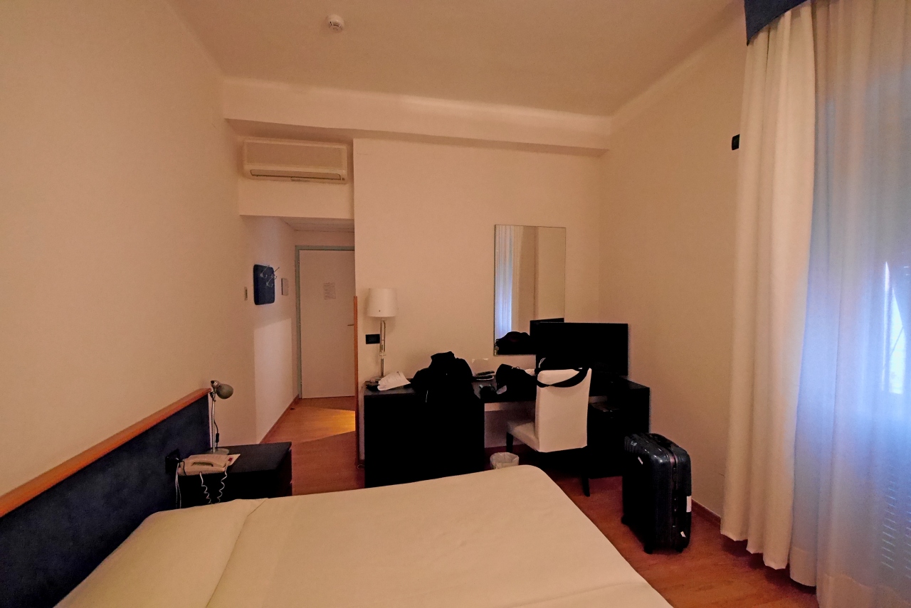 一泊ダブルルームのシングルユースで140ユーロ 20841円(このときユーロ高かった!)Venereで予約の現地払い.部屋はシンプルだが,広くて,バルコニー付き.海が見える.カップルなら最高の部屋だ.バス付き.港にも近く,丘の上の旧市内にも近い.私たちはニースからフィレンツェにいく中継点として選んだ町だが,西リビエラとしてとてもいい街だと思う.フロントも親切.英語が十分通じる.残念なのは朝食は三ツ星レベルでホットミールはゆで卵のみだった