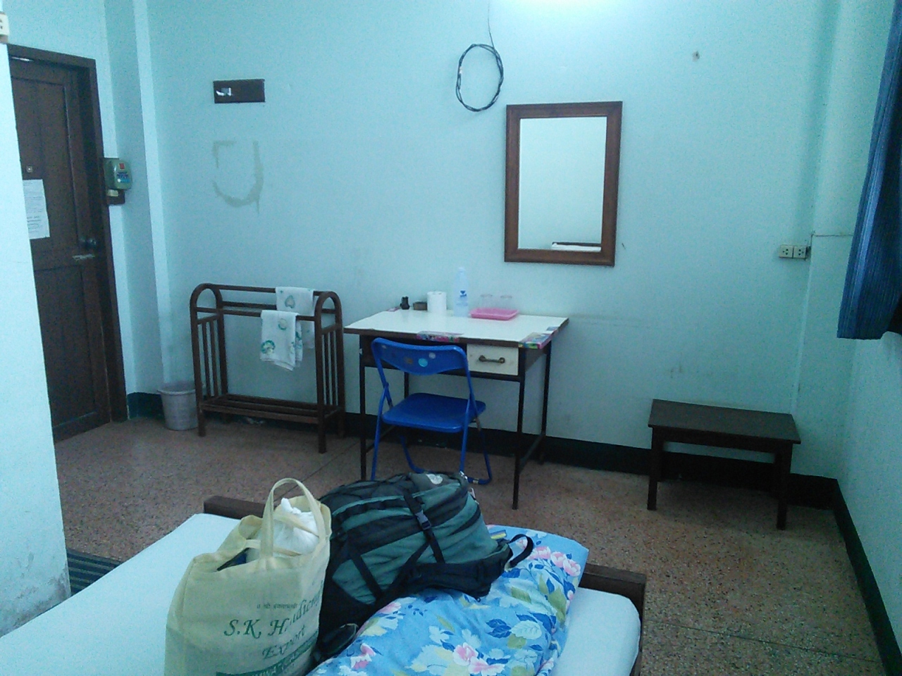 1階にある160Bのシングルに泊まりました。シングルと言っても枕が2つあるダブルベッドなので2人でも寝られます。水シャワーとトイレあり。調度品や壁は少しボロいですがおおむね清潔です。バスタオル、石鹸、Tペーパー、水1本付。連泊すると毎日掃除してくれて水1本もらえます。1月の涼しい時期だったので水シャワーが難点でしたが昼間に水をしばらく出していれば浴びれるくらいにぬるくなりました。