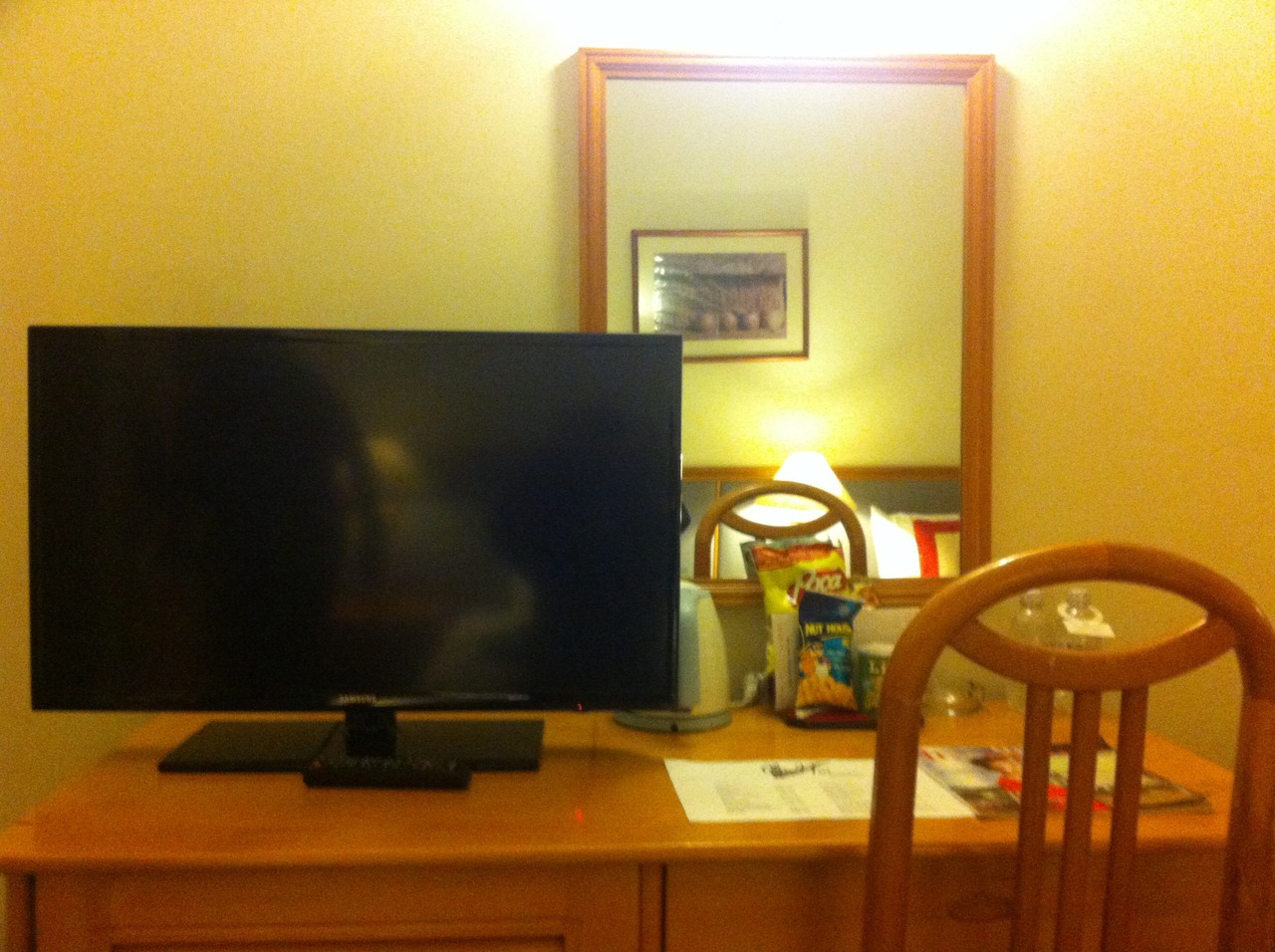 お部屋にはハンガー(5本程)、セキュリティーボックス、TV、冷蔵庫、湯沸しポットがあります。