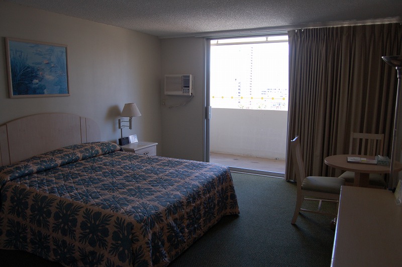 ホノルルの中でもワイキキよりはアラモアナに近い場所に位置します。ホテルというよりかはコンドミアムに近く、大型の冷蔵庫の他にキッチンもありました。私は全て外食や弁当でまかないましたが、アラモアナのドンキホーテからも近いので自炊も可能かと思います。清潔度は比較的普通でしたが、ギリギリ海も見えます。