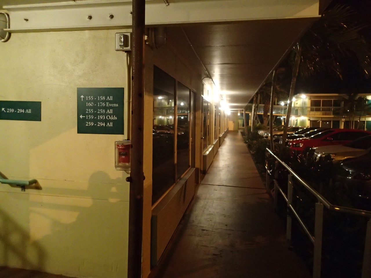 フロントは道路沿い、車をいったん停めてチェックインすると部屋まで車を走らせることとなる。