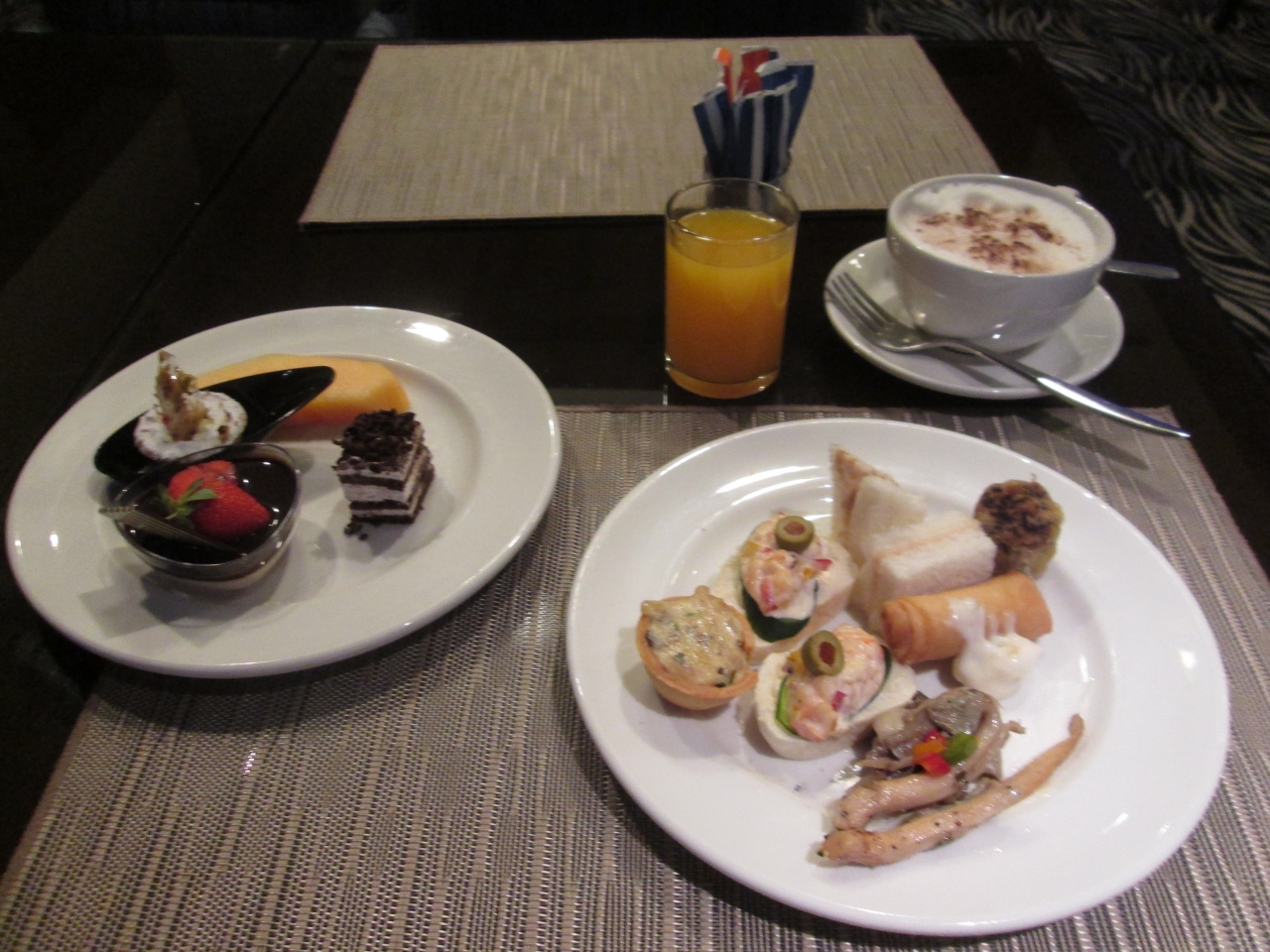 プレミアルームに宿泊すると28階の専用ラウンジで19時30分まで軽食とドリンクが無料で利用できる。サンドイッチからデザートまで置いてあり滞在中は夕食はこちらで済ませた。種類は少ないがアルコールも自由に飲めた。