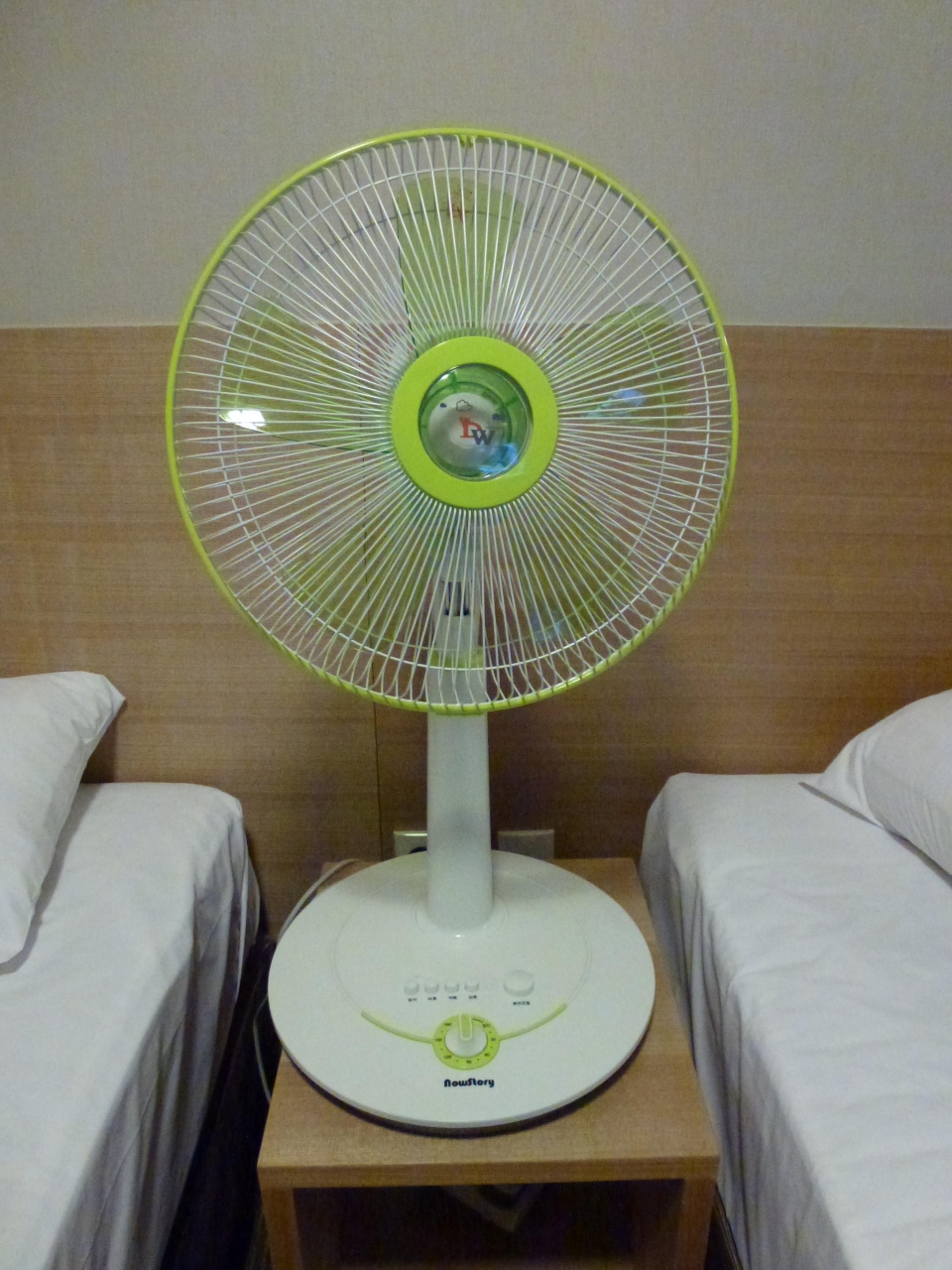 次の日、フロントに言ったら、扇風機を持って来てくれたけれど、半袖で寝ても暑かった!