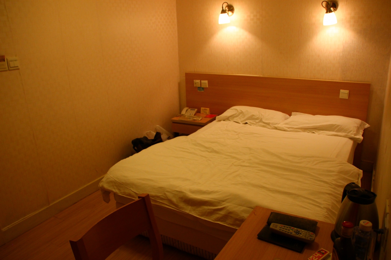 南京東路の南の福州路にある経済的なホテルです。地下鉄人民公園駅と南京東路駅から徒歩10分、外灘までも徒歩圏内と立地は抜群です。たぶんこの界隈ではいちばん安く泊まれるのではないでしょうか。(約4000円)。フロントの人も英語が喋れます。デポジットは100元とられました。部屋は窓がなく(グレードによる)、狭いですがベッドは広く、清潔できちんとベッドメイクもしてくれます。冷蔵庫はありません。寝るだけなら何も問題ないです。ただ、暖房の効きが悪いのがちょっと難点です。