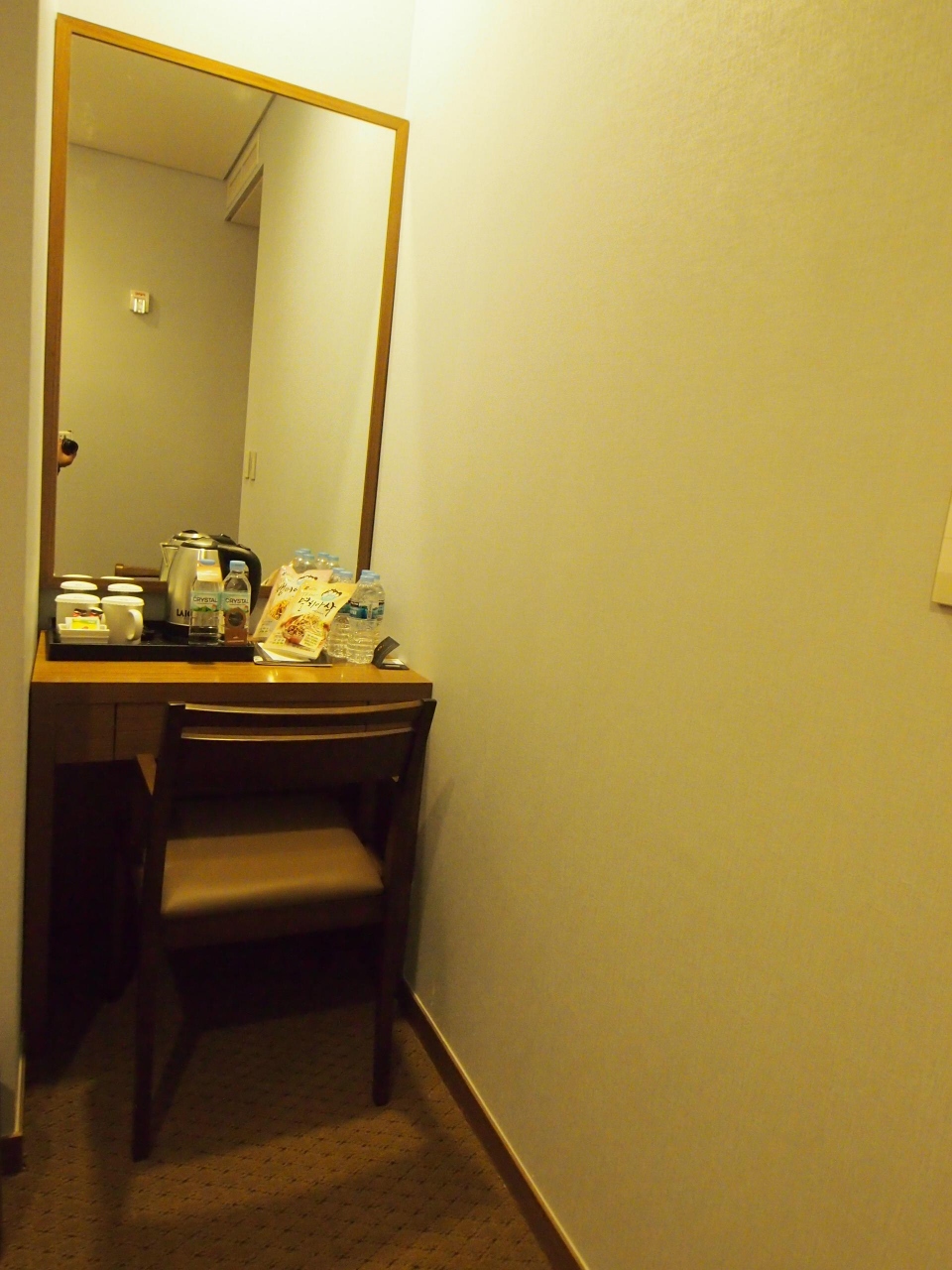 コンセントは3つしかない(ドレッサーの前に2つとバスルームのドライヤーのコンセントのみ。かなり使い勝手が悪い)