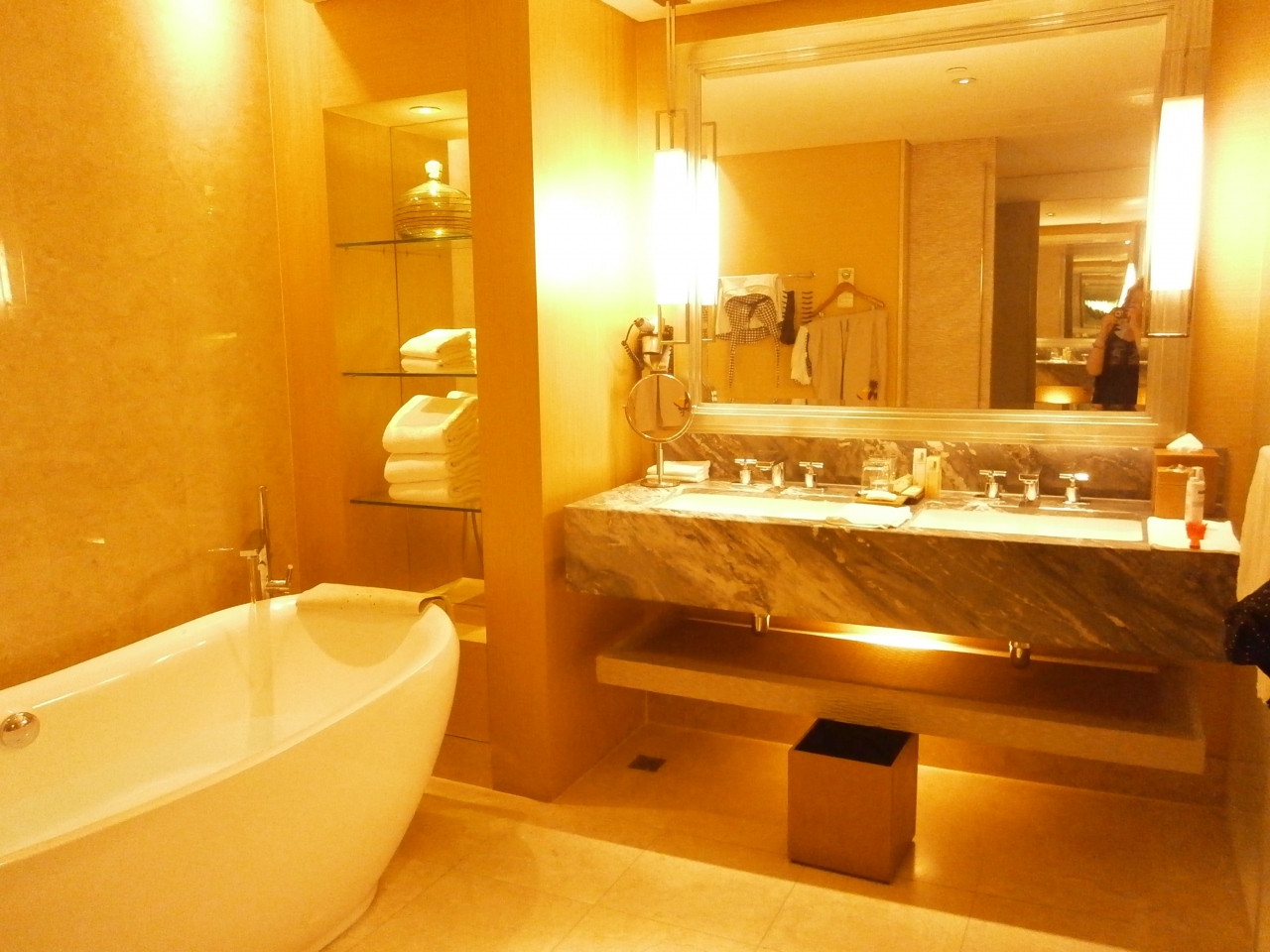 通されたプレミアムツゥインは、洗面台も2つあるし、猫脚のバスルームの南国っぽくていい。
