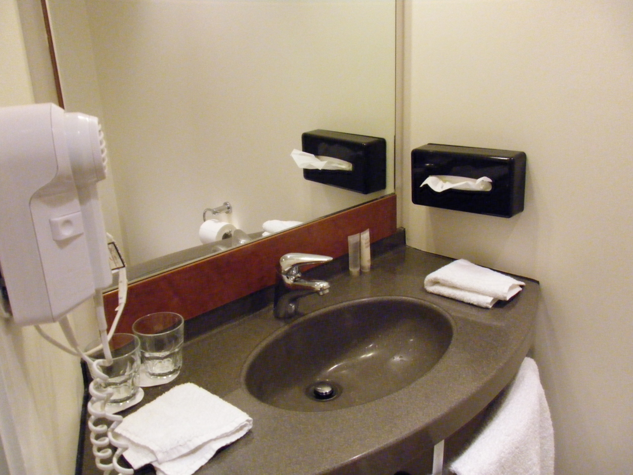 客室は小さく、スーツケースとベッドでいっぱいといった感じにはなりましたが、バスルームも含めてとても清潔でした。