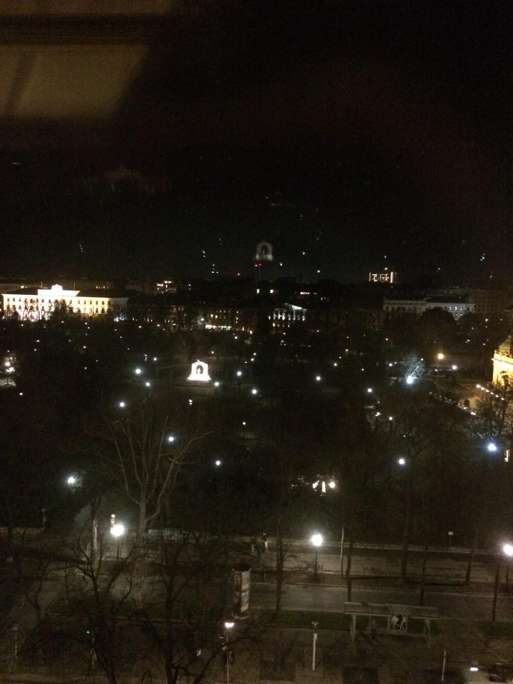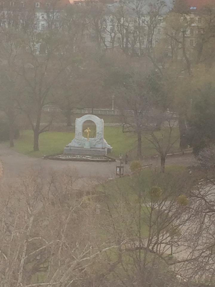 一番上の安い部屋に宿泊。丸窓からヨハン・シュトラウス像が見えていい感じ。