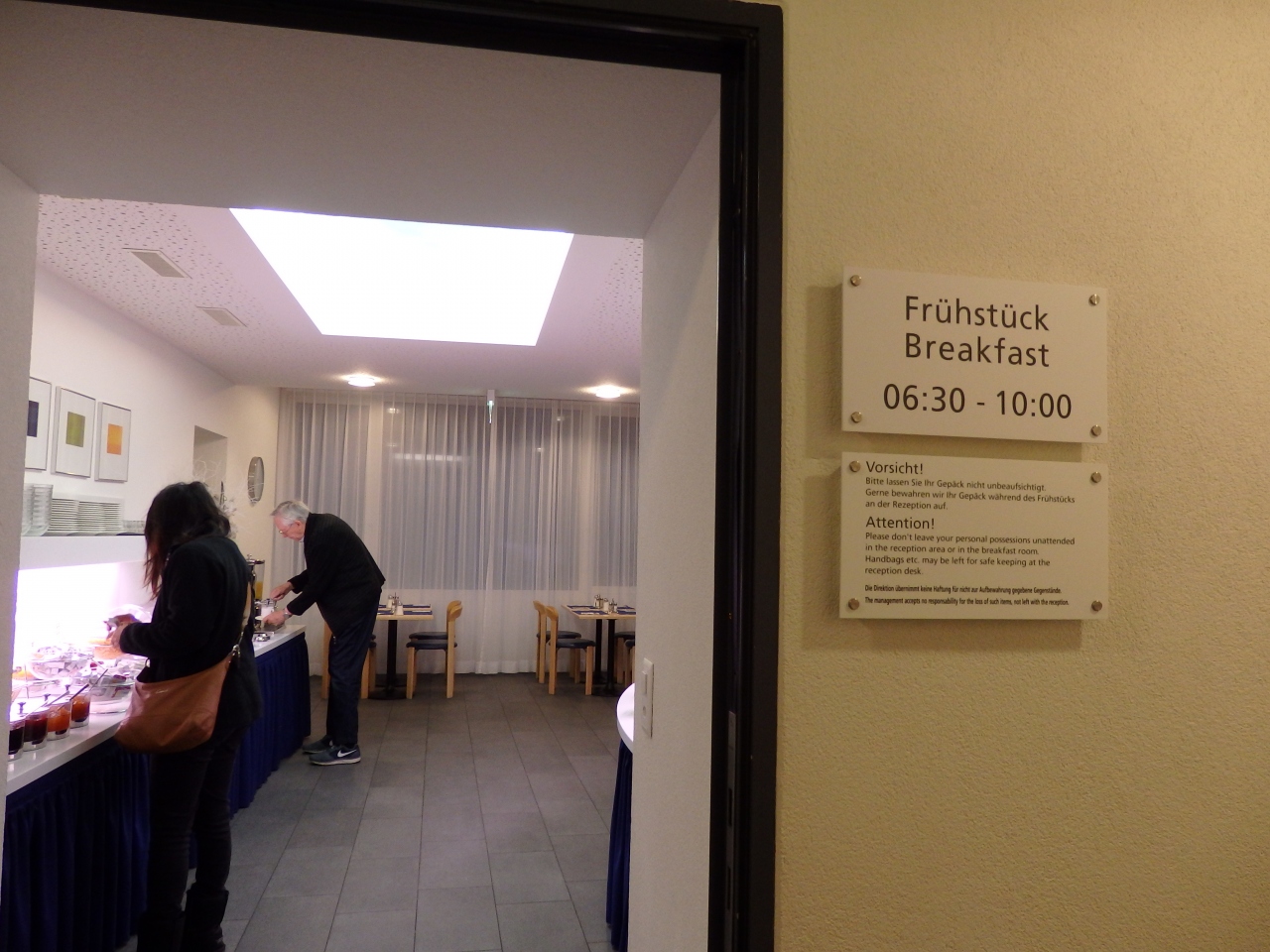 チューリッヒ中央駅からスーツケースを持っていたので歩いて10分くらいかかりました。ホテルは坂道の中腹にあり、坂道をのぼっていかないと行けないので荷物が大きいと大変です。