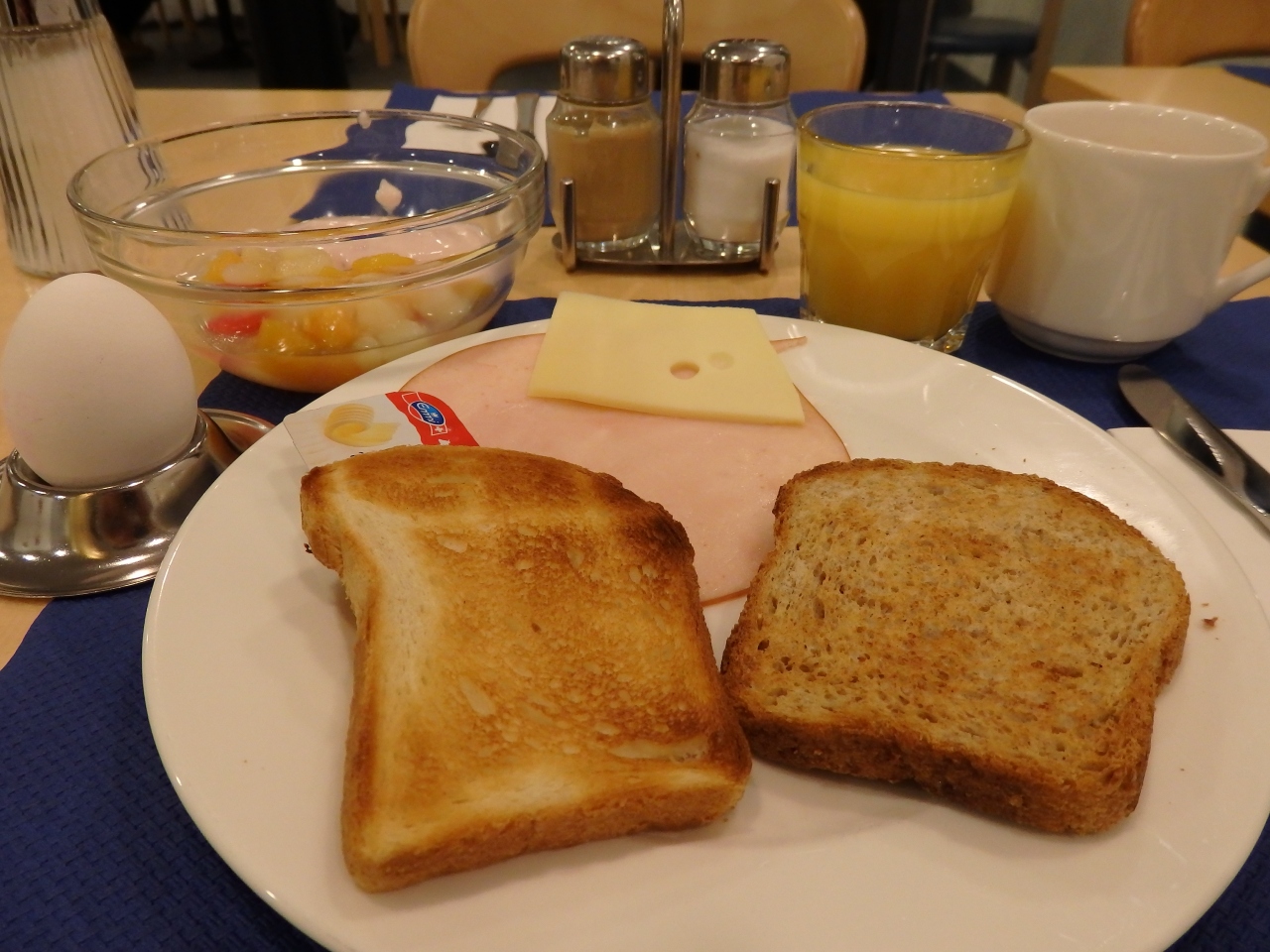 朝食も温かいものはありませんでしたが、パンとハムとチーズとヨーグルトなどはあります。WiFiも無料で使えます。