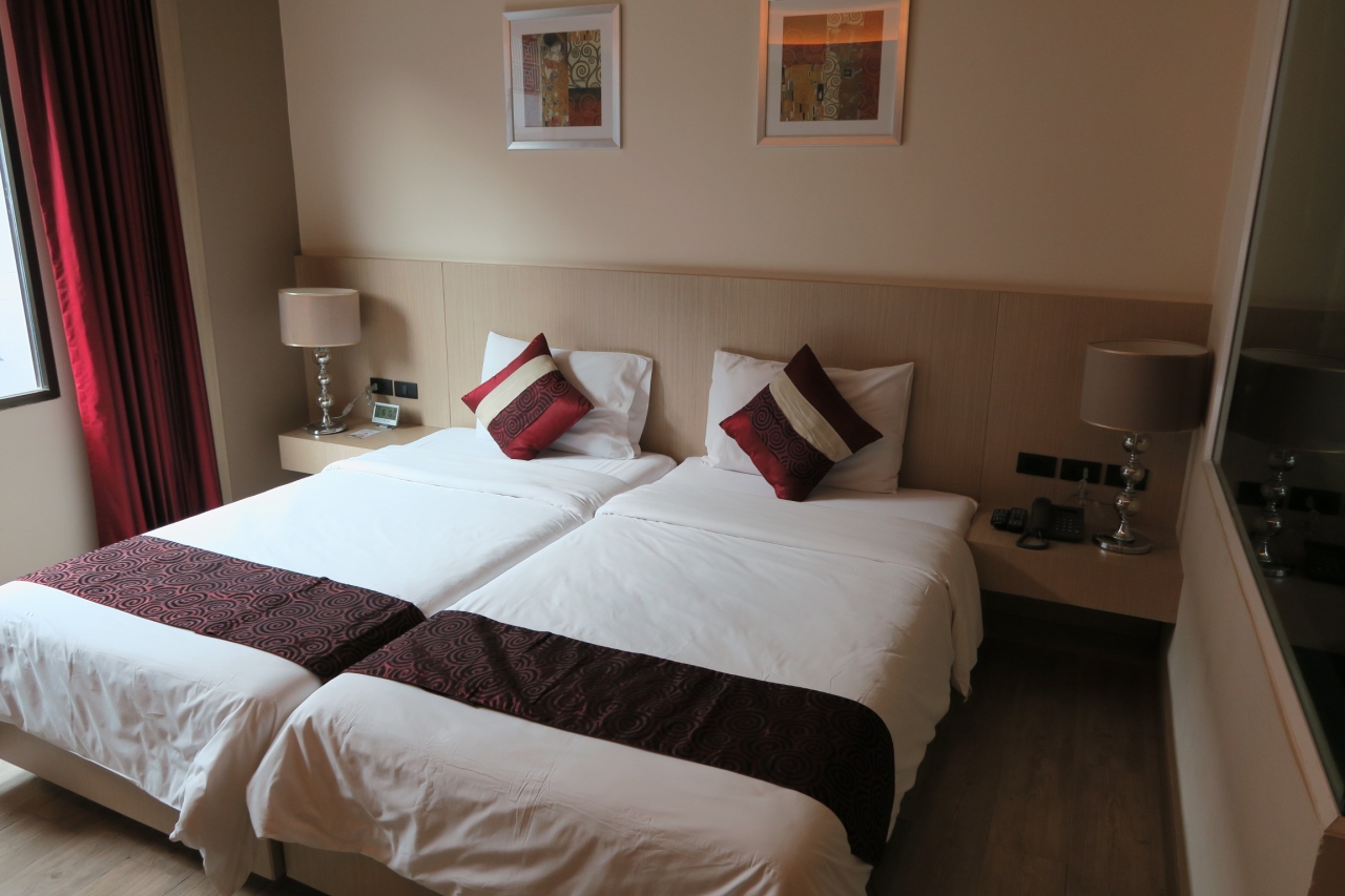 連続する店舗のひとコマがホテルエントランスになっております。ここのソイは途中までは風俗店が沢山あり、怪しい雰囲気が苦手な方は要注意?改装された客室は以外にお洒落でモダンなインテリアや調度品でまとめられております。入り口キーもカード式でした。但し、クイーンサイズダブルベッドのはずが、ベッドマット連結式でした。搬入経路もありませんし、全客室は同じ広さでしたので寝具は最初からこの方式だったと思われます。ロビー脇に無料のコーヒーベンダーがありましたが、ブラックコーヒーは指定できず、ミルク砂糖入りコーヒーのみが飲める機械でした。睡眠に質に拘らない方にはお奨めできるホテルです。
