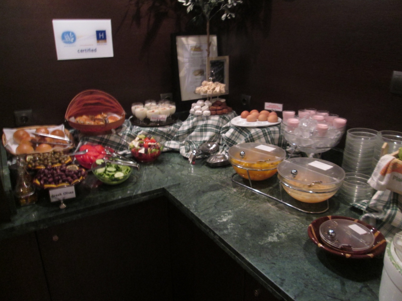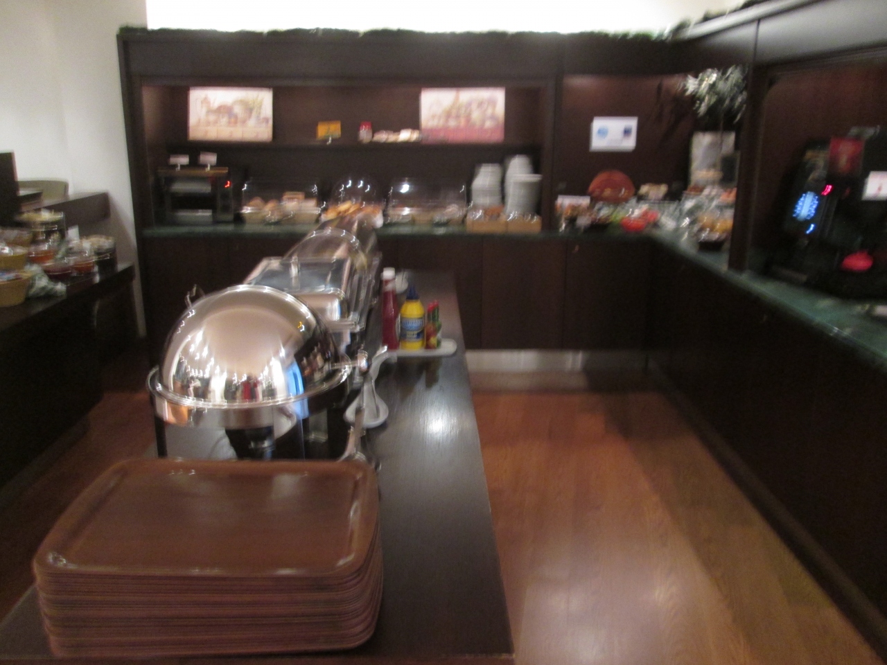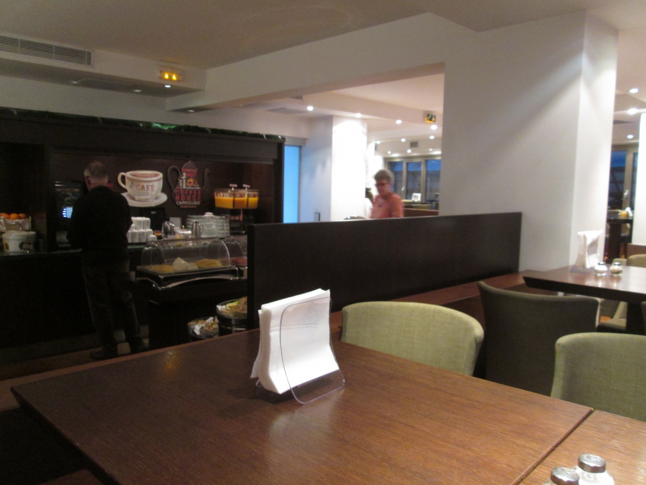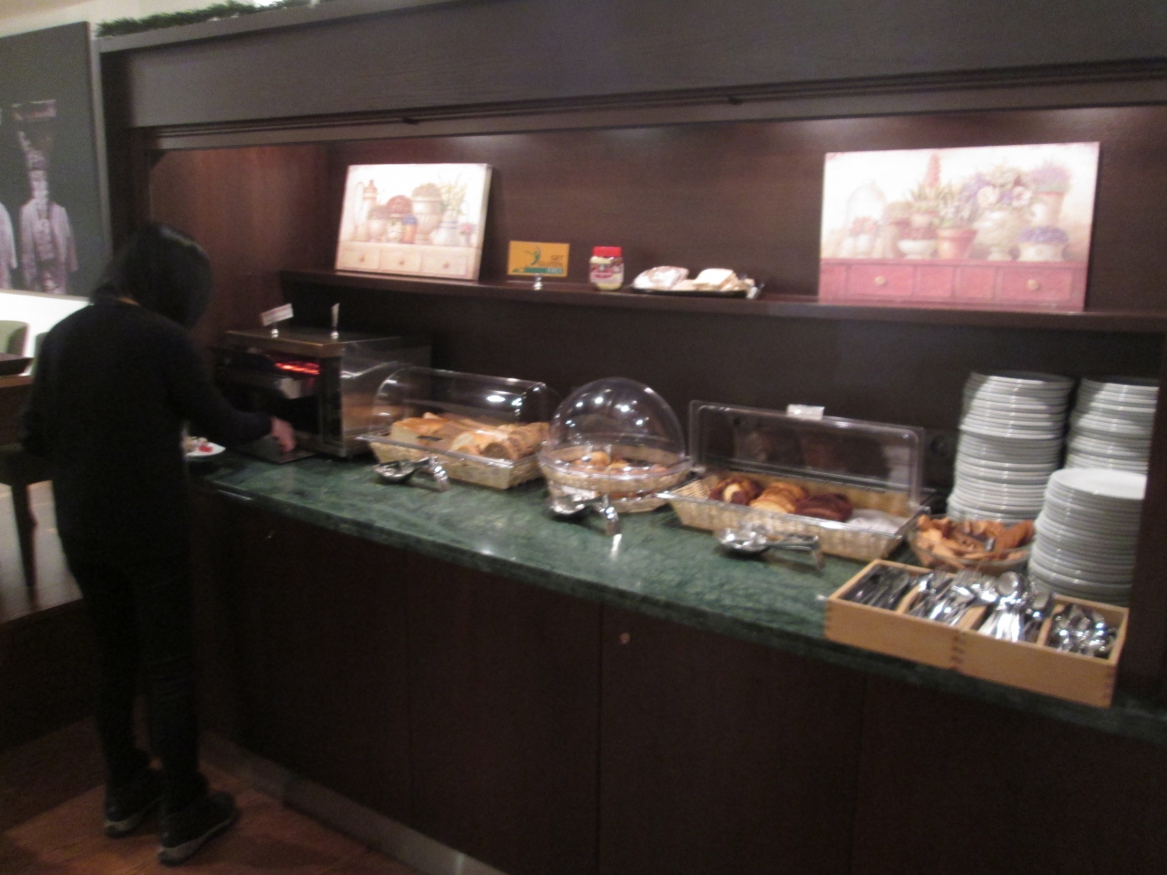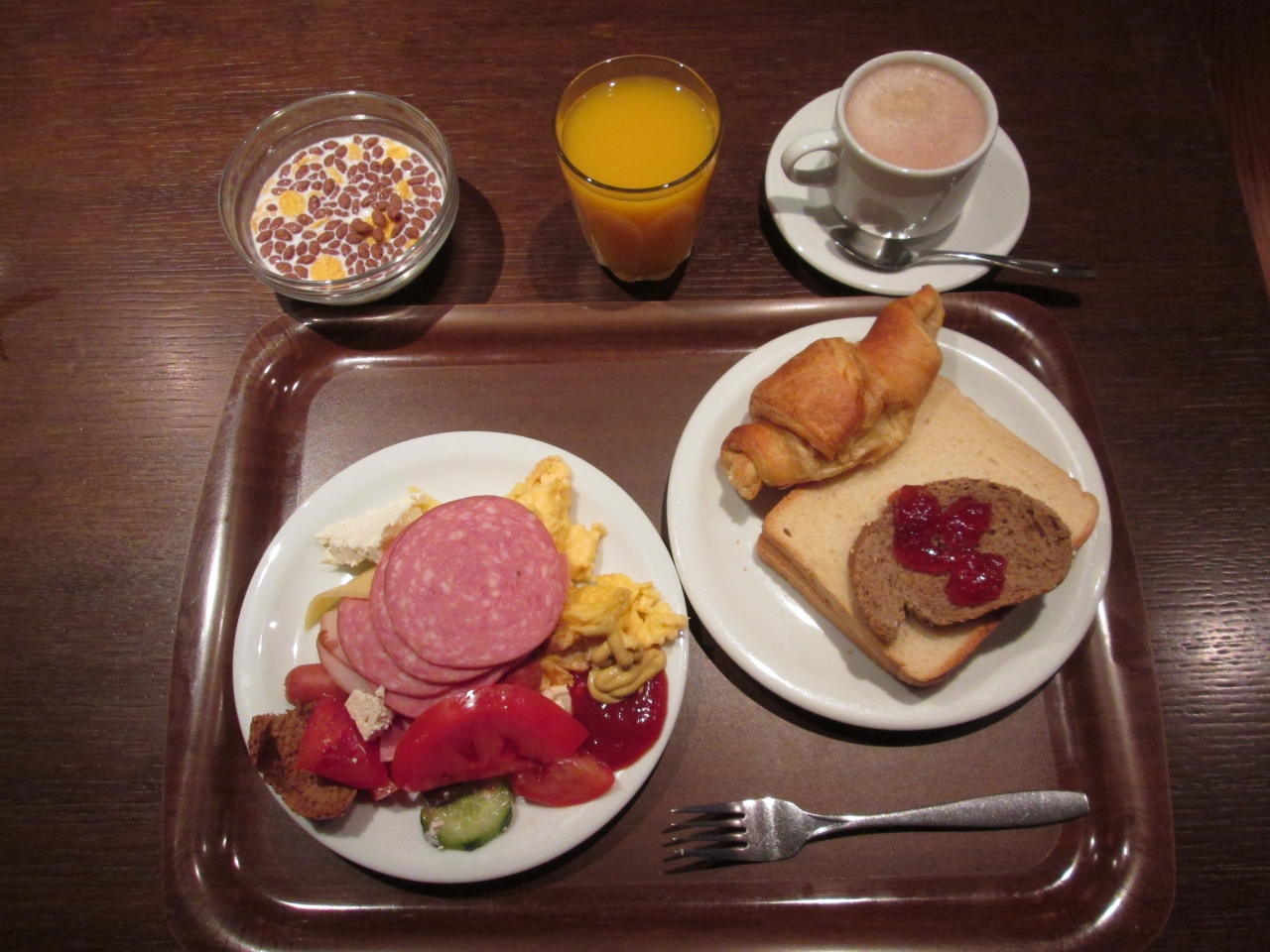 ヨーロッパのホテルのなかでは種類豊富のメニューである。毎日同じようなメニューであったが、ホットメニュー、野菜が置いてあった。クロワッサンはこちらの厨房で作っていると思われ、焼き立てでおいしかった。朝食中に女性スタッフが回ってきて観光情報や滞在中困ったことはないかなど聞いてくれるのが良かった。