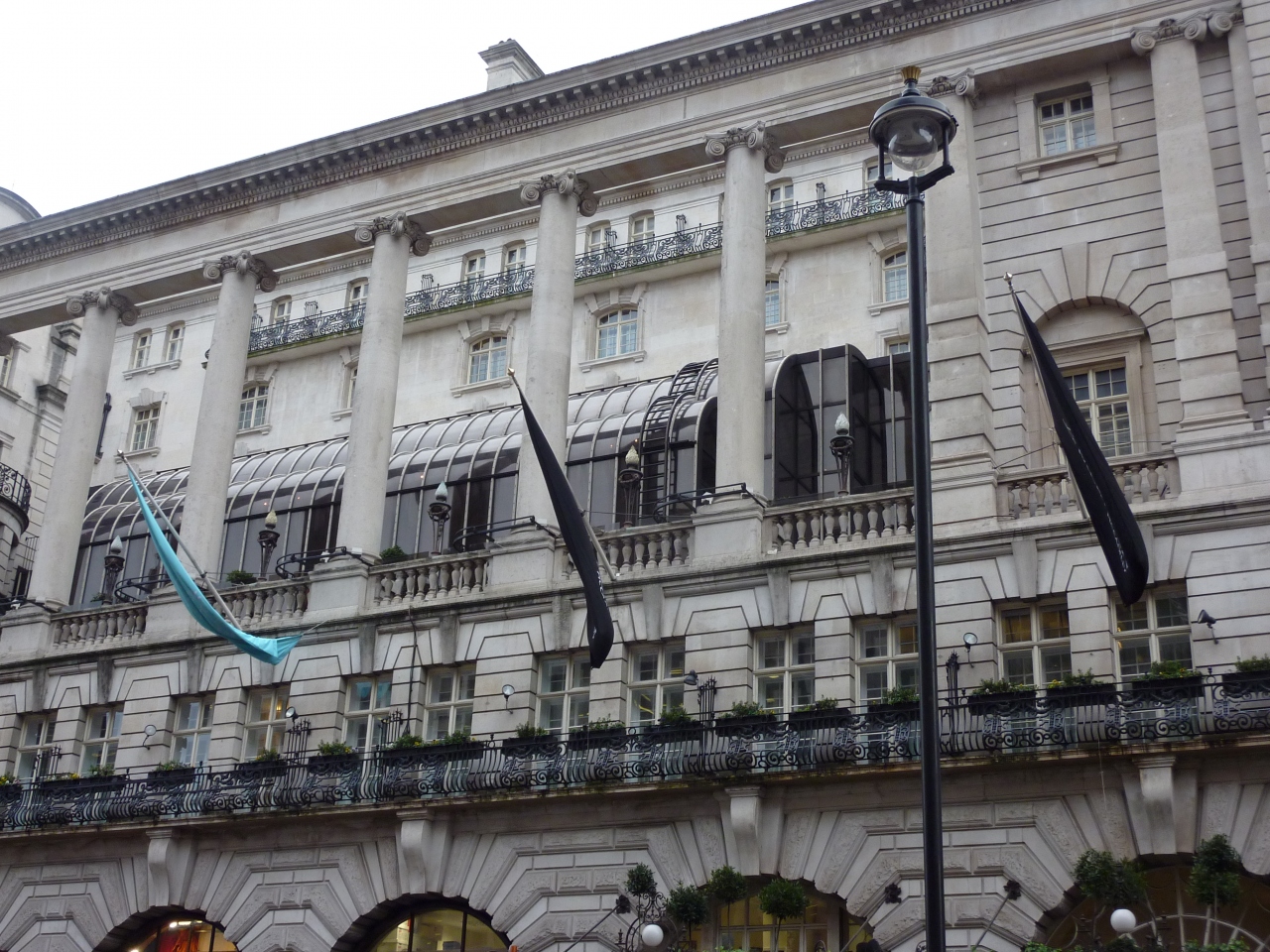 ピカデリー・サーカスから1ブロックでホテルの裏側はリージェント通りの湾曲を形成しています。同じ建物の一階には沢山のショップがあるため入口はそれ程広くありませんが、中は広く、2階のテラス奥は朝食レストランになっています。