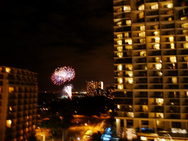 金曜、高層のお部屋に宿泊の場合はヒルトンの花火が見られるでしょう(19:45から5分ほど)。