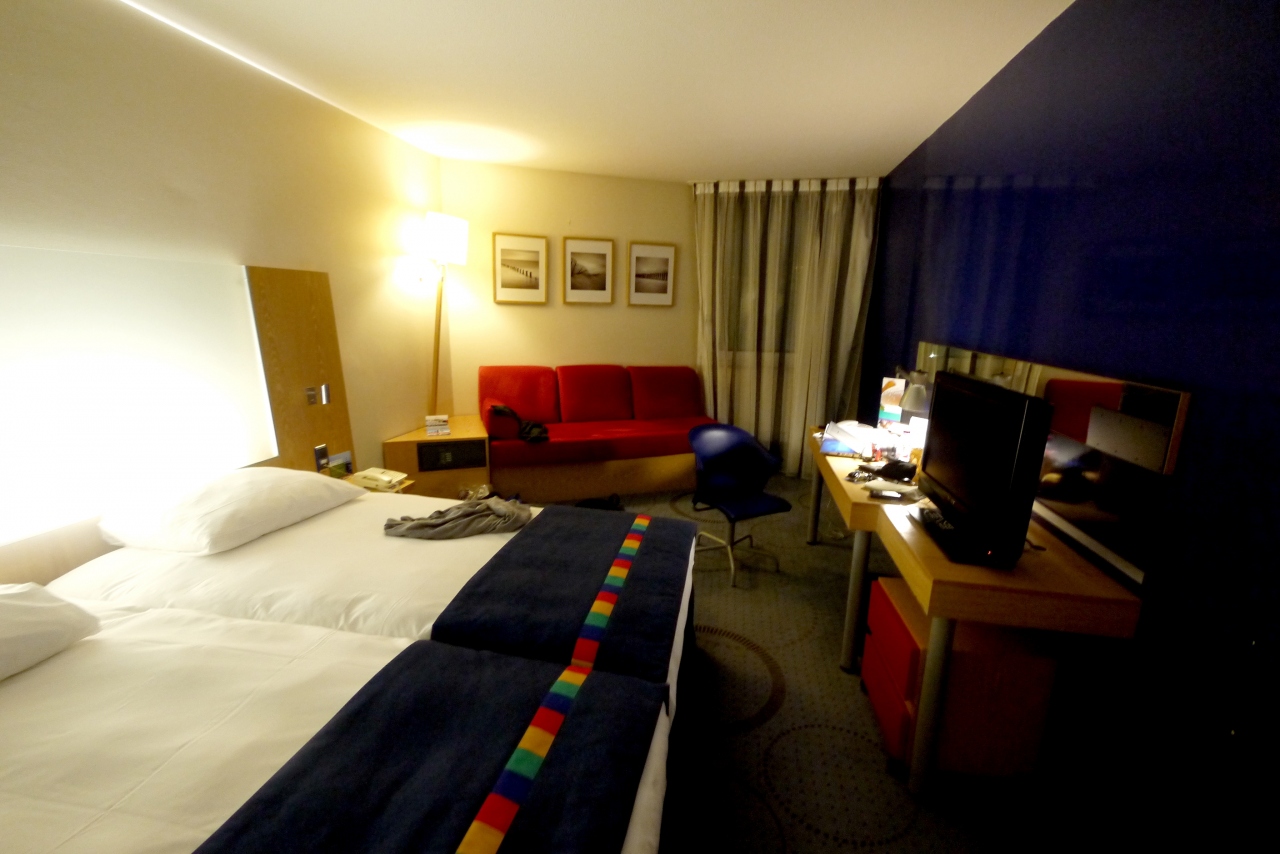 ホテルパークインニースは2011年2月にSASのマイルで宿泊したラディソン系のホテル.中は広くて落ち着いた雰囲気で過ごしやすい.バスも付いている.第1ターミナルから徒歩4分だし,ターミナル間無料バスのバス停から徒歩30秒でもあり,すごく便利だ.今回は朝食は食べなかったが2011年にはまあ三つ星上の水準レベルだった.夜遅い到着や朝早い出立などにはとても便利だ.アクセスは第一ターミナルを出発したバスの最初の停留所,第二ターミナルからは第一ターミナルに寄った(ここでしばらく停車するがそのまま乗っていればよい)次の停留所.一方向のみのバスなので,乗車した場合は第二,第一の順に停車.アップルホテルズ シングル12510円と安い割には部屋はいい