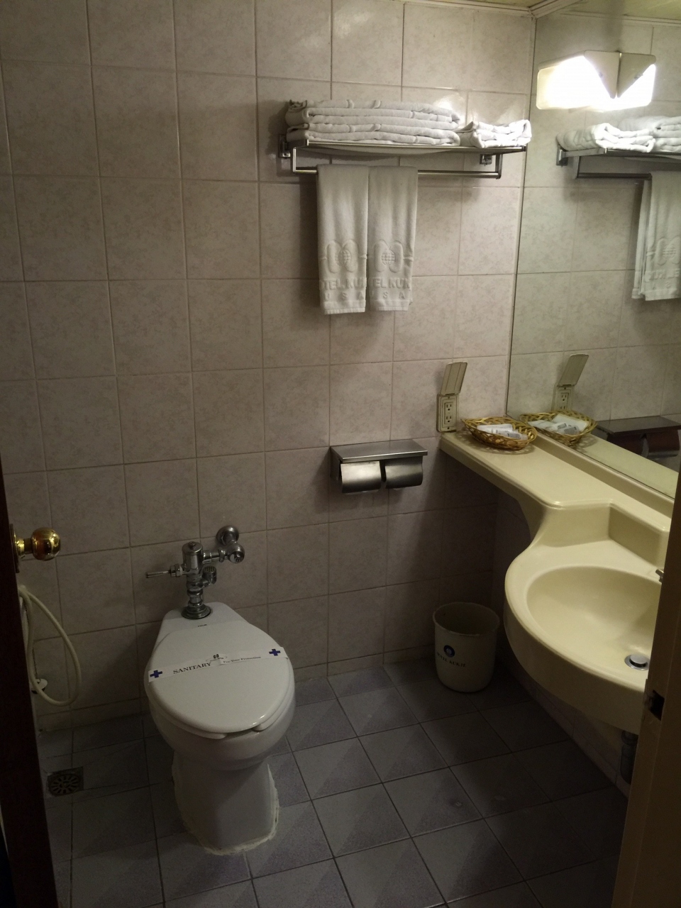 確かに古さは否めませんが、フロントやエレベーターは綺麗だし、部屋も広くてそれなりに清潔です。
