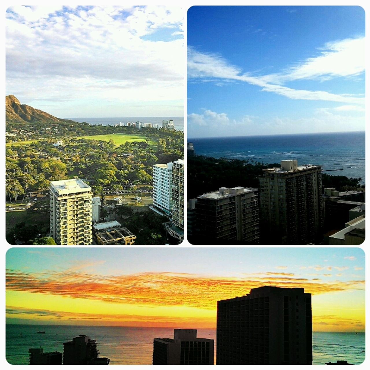 家族旅行は久しぶりです!ハワイは初めてです。主人は海外赴任中、大学生2人(うちひとりが今ハワイへ留学中)都合がギリギリまで分からず、航空券は各自手配し宿泊先は人数の変更が有っても良いようにコンドミニアムを撰ぶことに(JTBハワイトラベルより予約) 予約内容は、デラックスマウンテンビュー(1ベッドルーム)でしたが案内されたのはオーシャンビュー32階の部屋でした!口コミで夜景が素晴らしいとの事で迷いましたがそのままにして正解でした。朝、夕に青い海と夕日が見れて、ラナイに出て左を覗くとダイヤモンドヘッドも見えます。ベッドルームはシングルとダブルベッドの2台に、リビングのソファベッドは希望すれば毎日ベッド仕様にしてくれます。部屋も浴室も清潔感があり、毎日のベッドメイク、タオル、シャンプー、coffeeなどの毎日の取替などホテルと同じ様な感覚でした! 私達が滞在中フロントには日本語話せる人は見かけませんでしたが、片言での英語でも理解してくれました!3日目にシャワーホースに漏れが出て、伝えるとすぐにヘッドごと新品に換えてくれたり、レンタカーを5日間借りての観光でしたが(サンセットの駐車場代は1日$15)チェックイン時に片言でチェックアウト時に精算する事を伝えると、毎日の出入りは自由に出来ました! サンセットの入り口からワイキキの中心部(ロイヤルハワイアンセンター)までは歩きで約16、7分かかります。ビーチ沿いに歩いて行くのは気持ちが良いのですが帰りはなかなか遠く感じてしまいます!車で動くには混まずに駐車場に入れるし良いか思います。 ホテやコンドミニアムを選ぶ時に 広さ、近さ、安さをいろいろいろいろ考えました。今回はアストンワイキキサンセットに ☆5個をつけさせて頂きました!