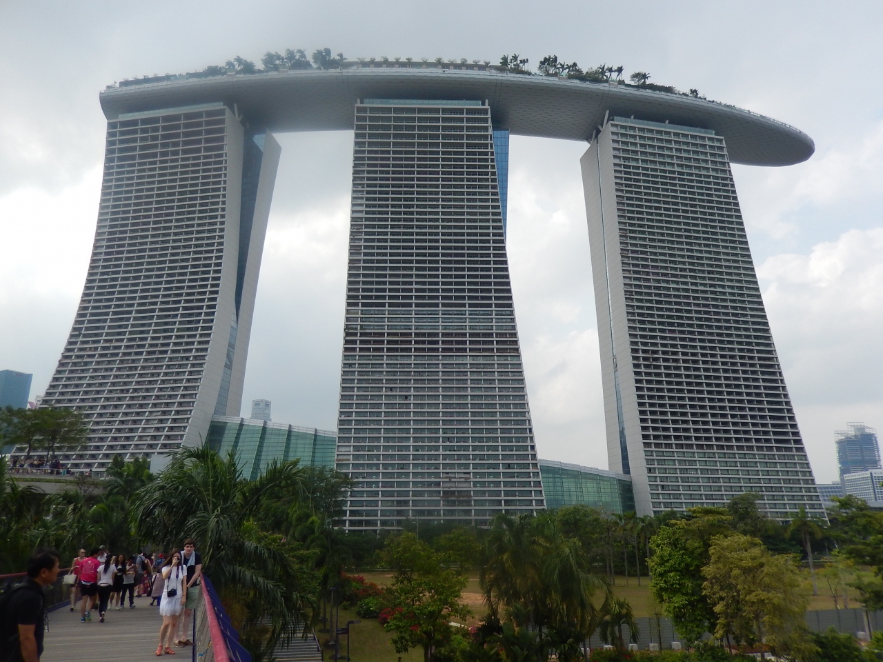 最近はシンガポールといえばここが代名詞。マリーナ湾に面して建つ巨大ホテルで、大きな船が3本の柱の上に乗っているような独特なデザインは見る全てを圧倒します。今回は宿泊しませんでしたが、インフィニティプールと同じ階にあるスカイデッキで景色を存分に楽しみました。マリーナ湾やその後方にそびえるビルの摩天楼、シンガポールフライヤーやガーデンズ・バイ・ザ・ベイなどが一望できます。夕陽が沈む頃にのぼり、ここから夜のガーデンズ・バイ・ザ・ベイのショーと「ワンダーフル」を鑑賞しました。音は聞こえませんが、移動なく楽しめました。感動したのは花火が目の高さで見られたこと。ちょうど春節の時期だったので、思いがけず、すごい数の花火があがり、真正面で見られ最高でした。