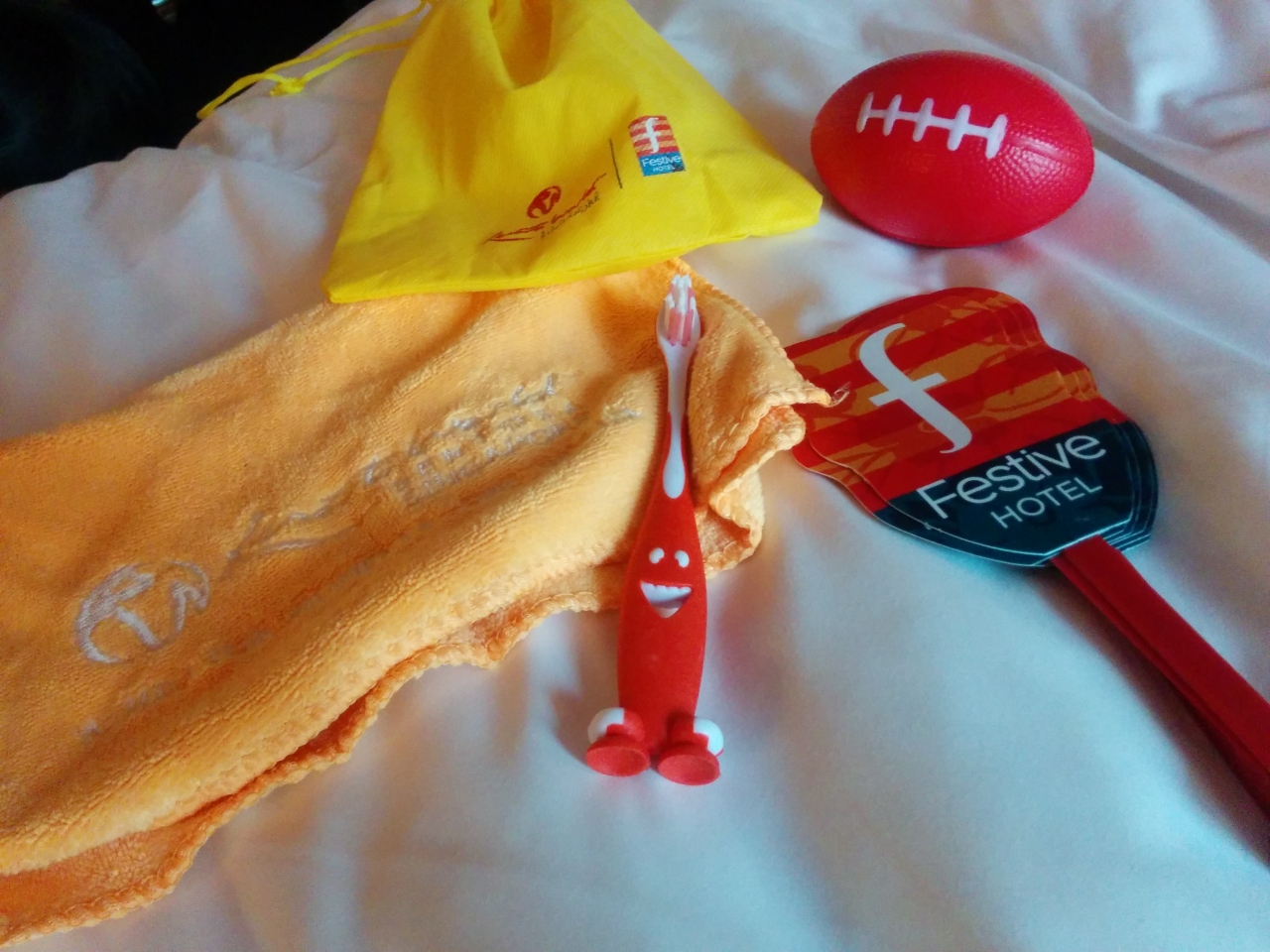 場所はUSSにも水族館にも行きやすいし、特に小さい子ども連れだと、USSで遊んでいても途中で一回ホテルに戻って昼寝もできるし、お腹がすいてもすぐに買いに行けるし、とにかく便利です。