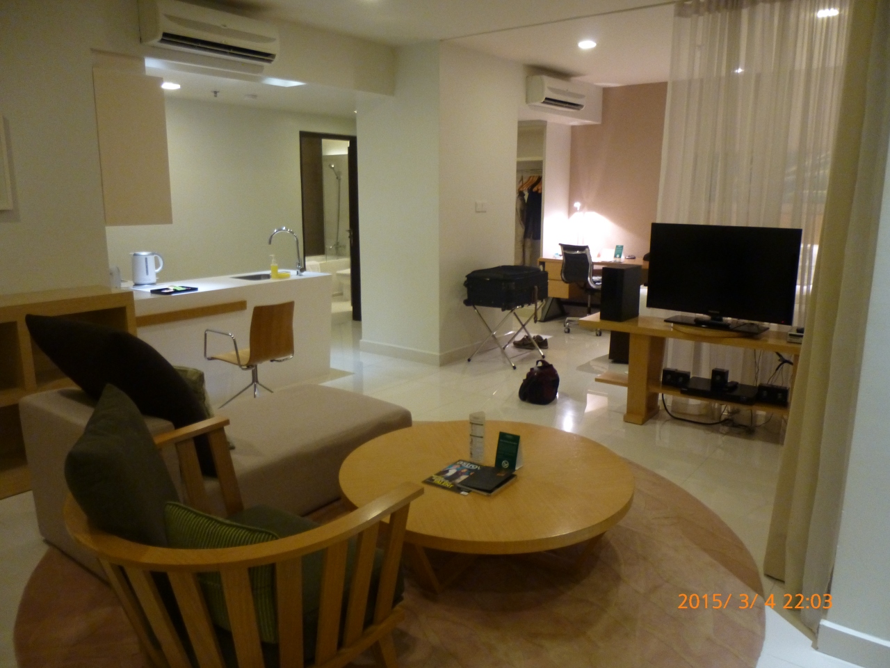 気に入ってます。ドアを開けたとき思わずオーと言ってしまった。部屋の作りが普通のホテルにはないような作りだった。(このタイプの部屋だけかもしれないが)長期滞在もできるようにキッチンも一応全てそろっていた。あとコンセントは1っ箇所だけ日本のコンセントが使えるようになっていたが、あとはBF型です。アメニティは歯磨き、かみそりはないです。ミネラルウオーター毎日2本置いてあります。インターネット有線ケーブルが来ています。かさが1本置いてあります。屋上のプール気持ちいいですよ。良いホテルだと思います。