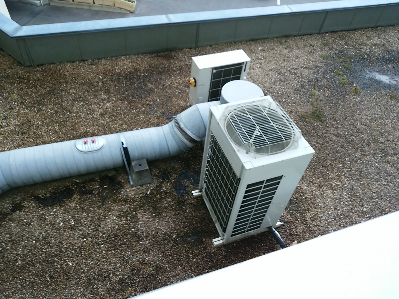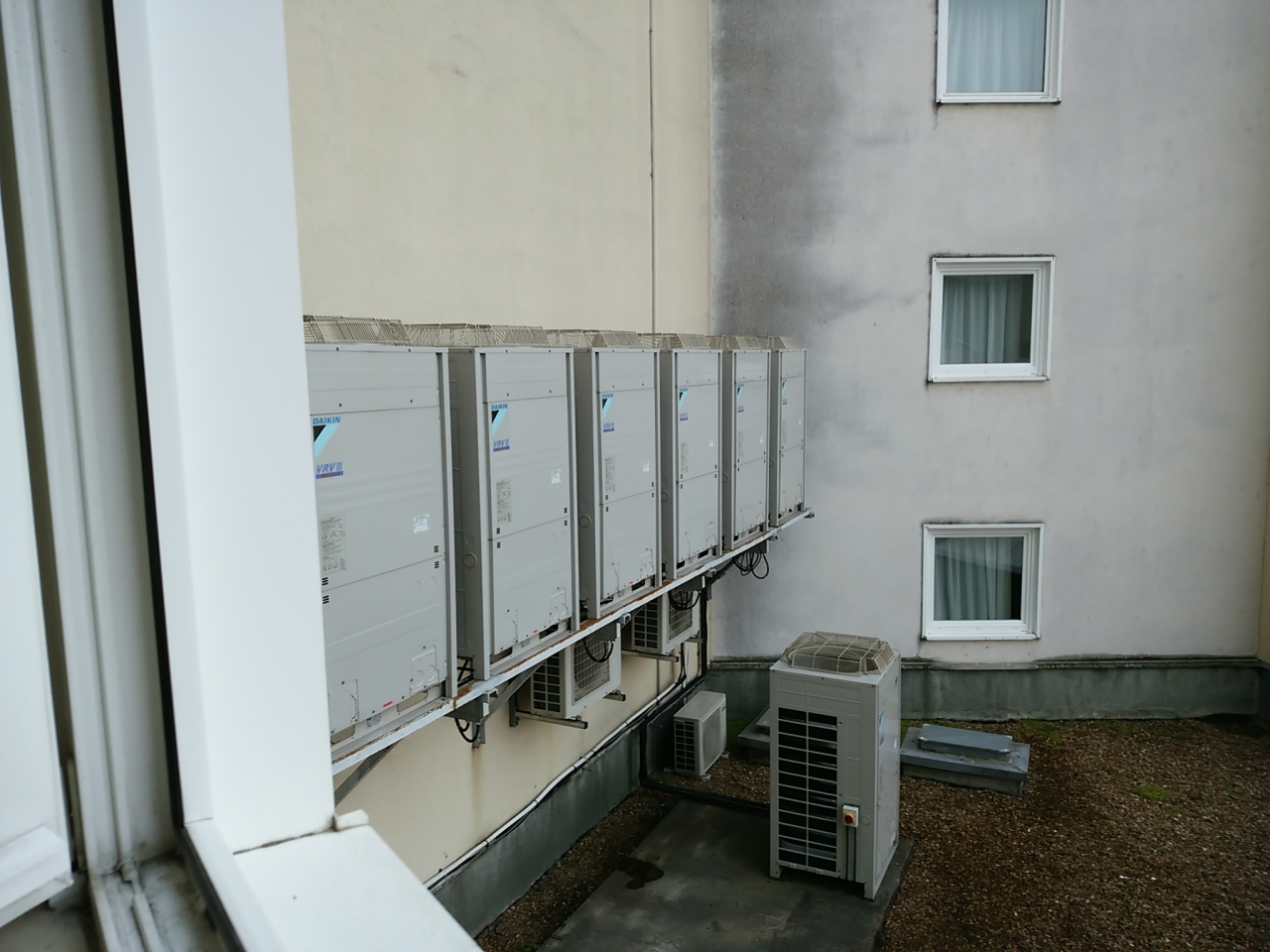 朝、部屋の窓を開けたら、ダイキンの大型機械が部屋の外に連なっていました!