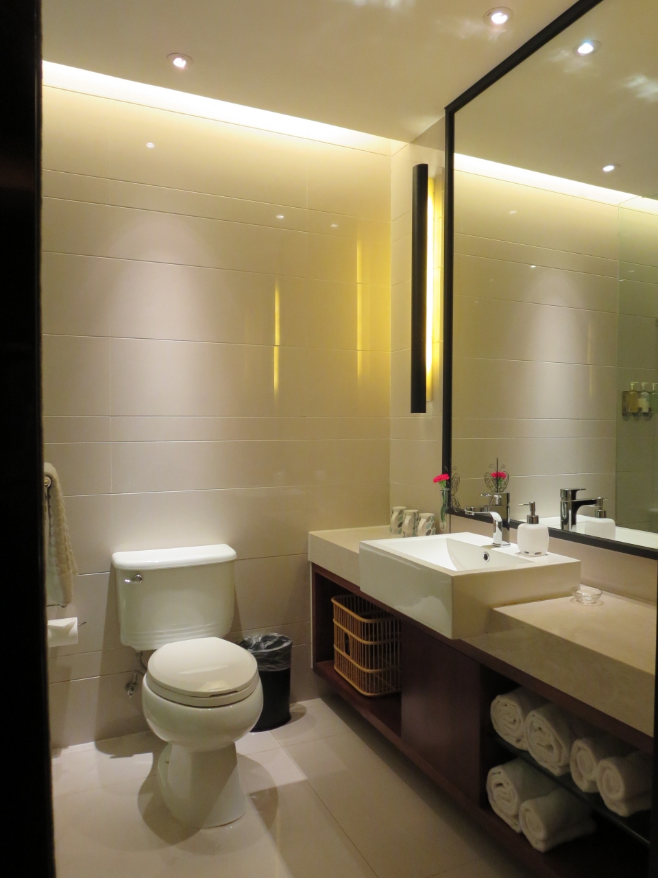 水回りは問題なし。洗面台配水管から下水の臭い、ただし上海ではやむなし。水を流す時以外は栓をしておくと、ある程度臭いを防げる。足ふきタオルはかなり使い込まれているけれど、他のタオルは可。