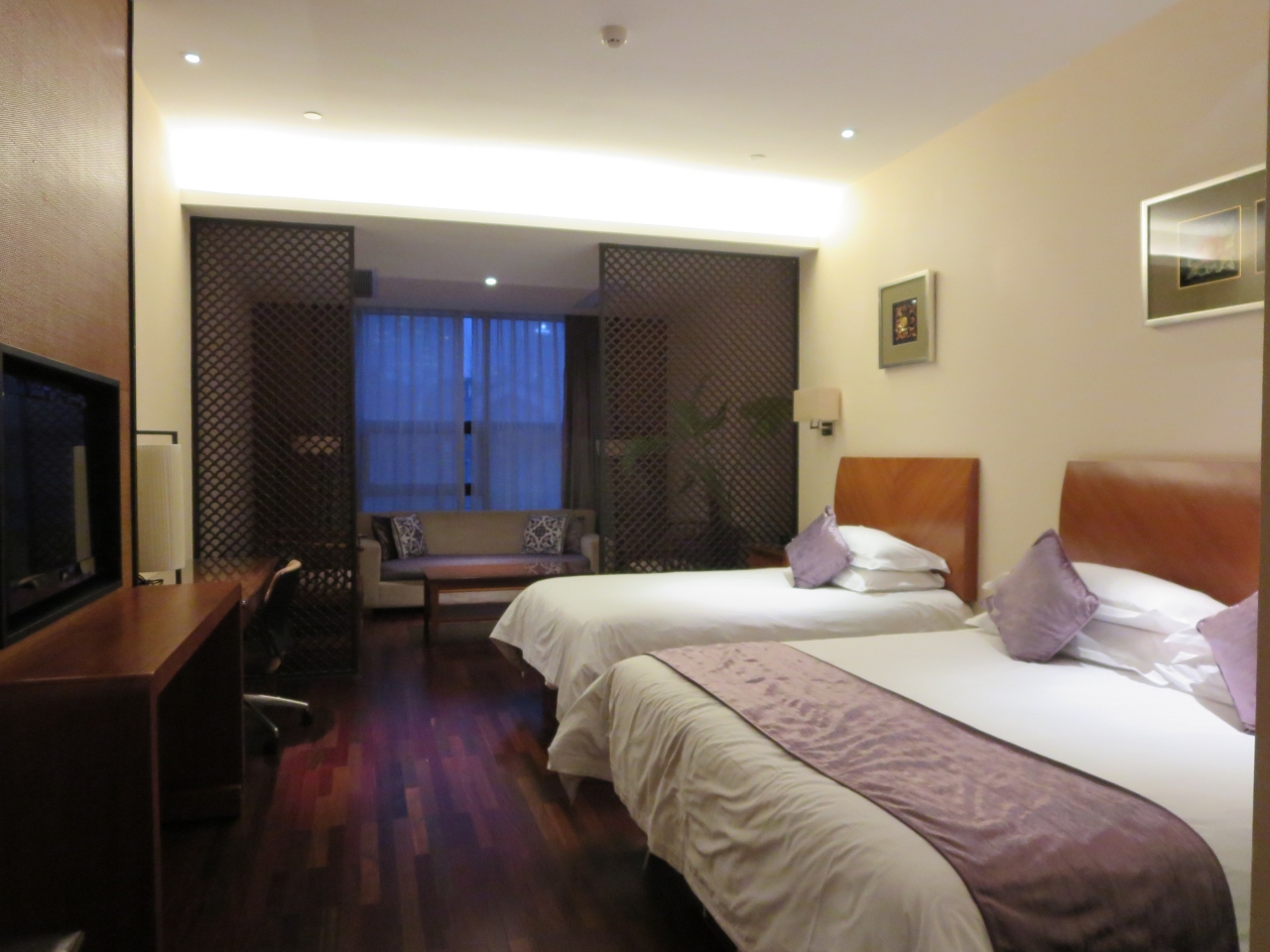 頼みもしないのにファミリースイートにグレードアップしてくれたが、その部屋(2階の2009号室)は人民路側でバーの真上。車の音はともかく、夜はバーの営業終了まで音楽がうるさくて眠れなかった。3階もうるさいかも。5階以上がよさそう。