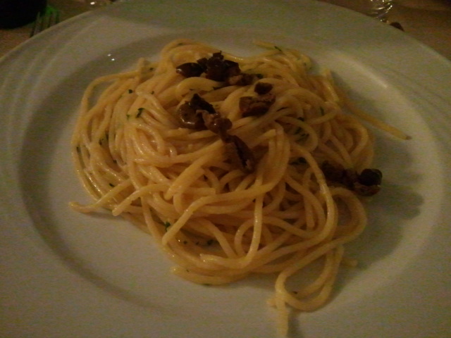 夕食は、茹ですぎたパスタと味の薄い魚料理でした。