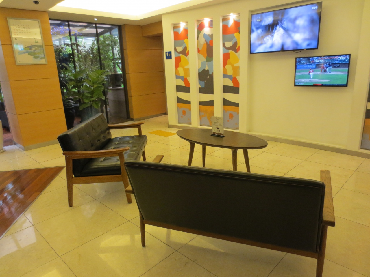 ホテルは地下鉄1号線の回基駅から徒歩5分ほどにあり、館内は女性好みのおしゃれな感じになっていてまだ新しいのではないかと思います。部屋も清潔感があり広いとは言えませんがテーブルセットもあるので充分ではないかと思います。また電気ポットなど必要なものは一通りそろっていると思います。浴室はシャワーのみでトイレといっしょでした。