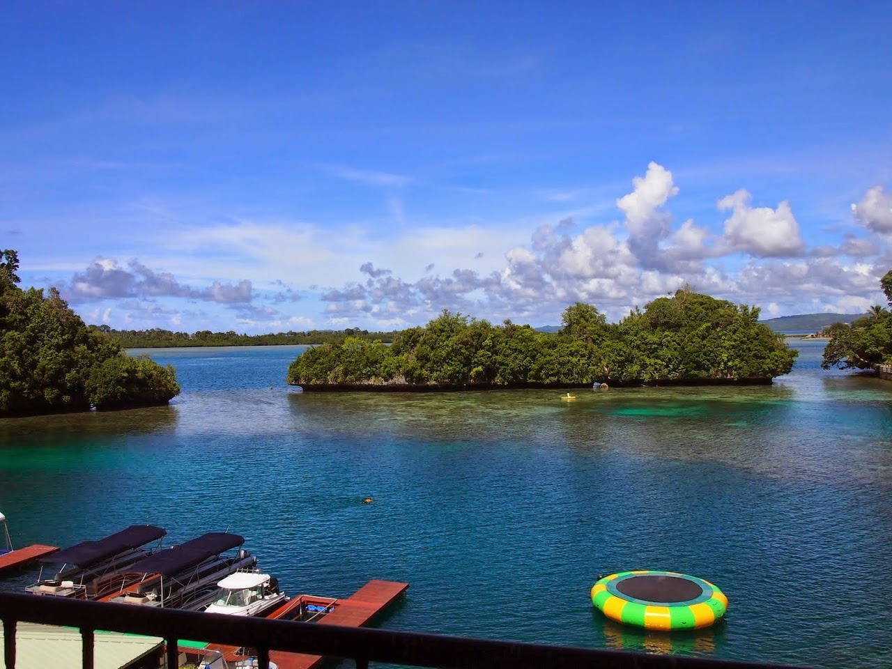 窓の下にホテルの桟橋があって、朝と夕方はボートがときどき出入りします。