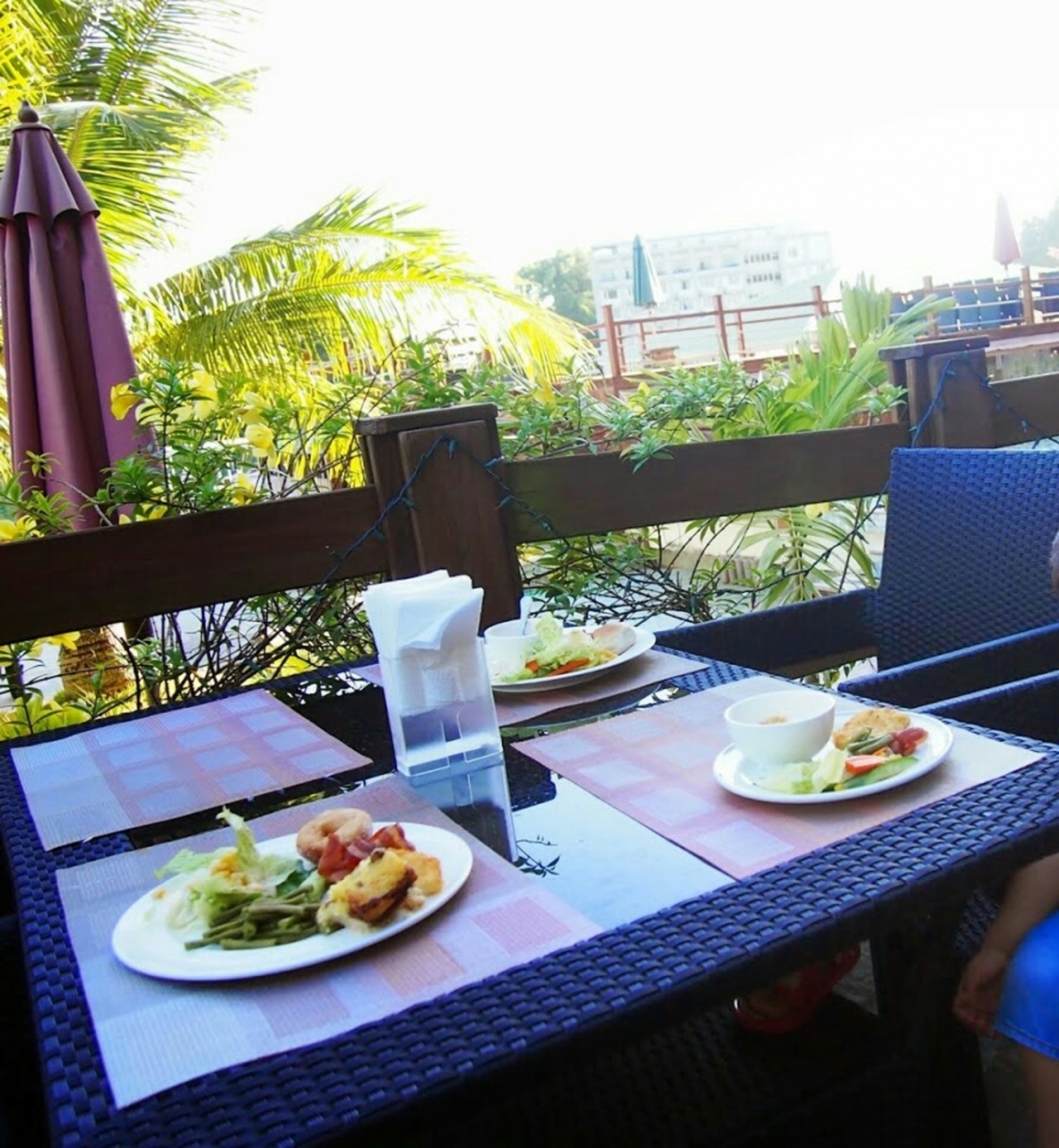 外のテラス席は朝は涼しくていい感じでした。ハエはちょっといましたが。