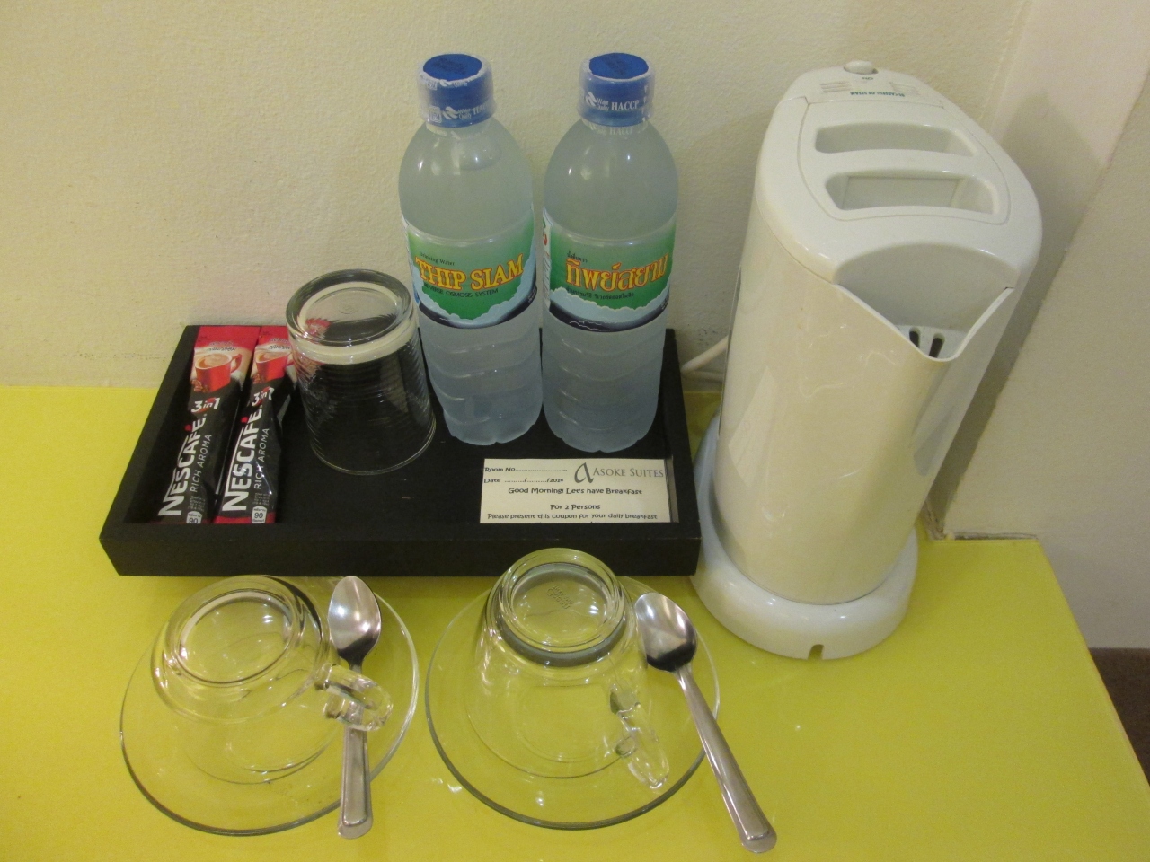 滞在中スコールのような雨に降られたが、BTSアソーク駅までは隣のビルやスカイウォークを上手に利用してアクセスできた。雨の日に立地の良さを発揮するホテルである。1階の受付やカフェはこじんまりとしていたもののアットホームで対応はいたって良かった。