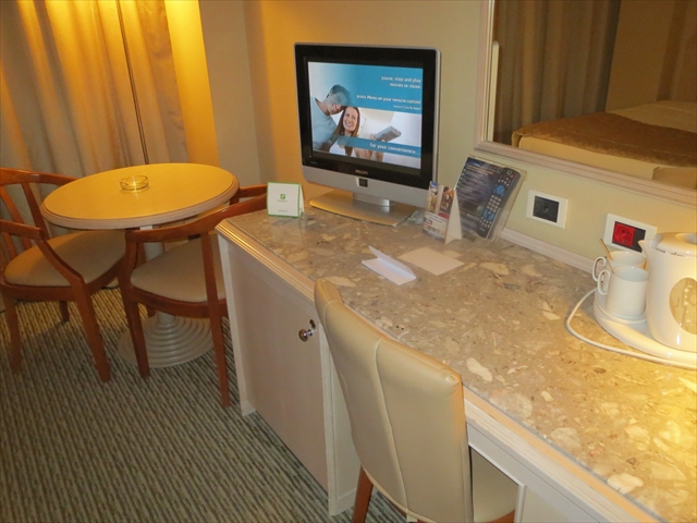 ビール、ジュースの入った冷蔵庫、湯沸かしポットとネスカフェ。ネスカフェは無料のようですが、ビールは€5と、かなり高いです。